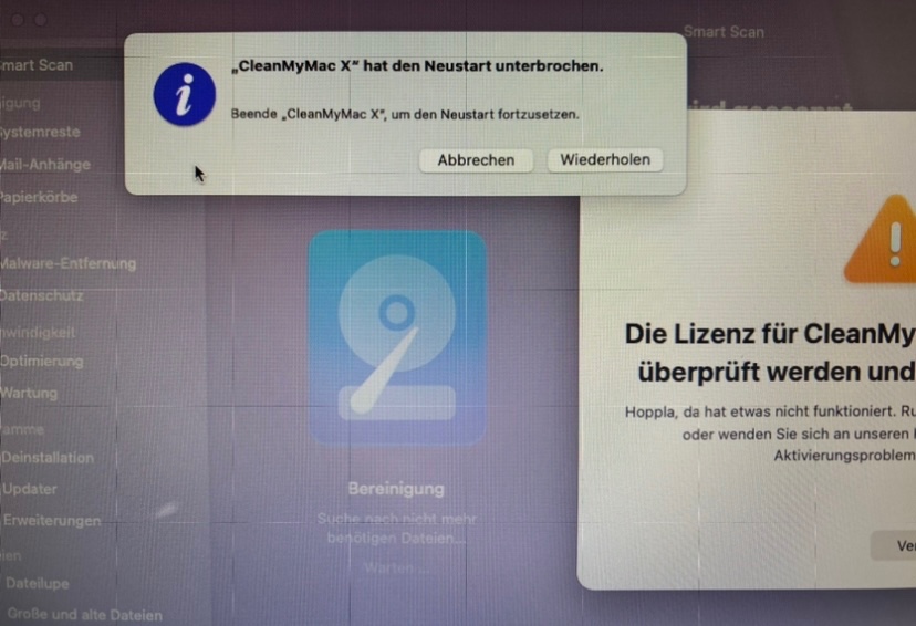 CleanMyMac X ist abgestürzt und blockiert den Mac