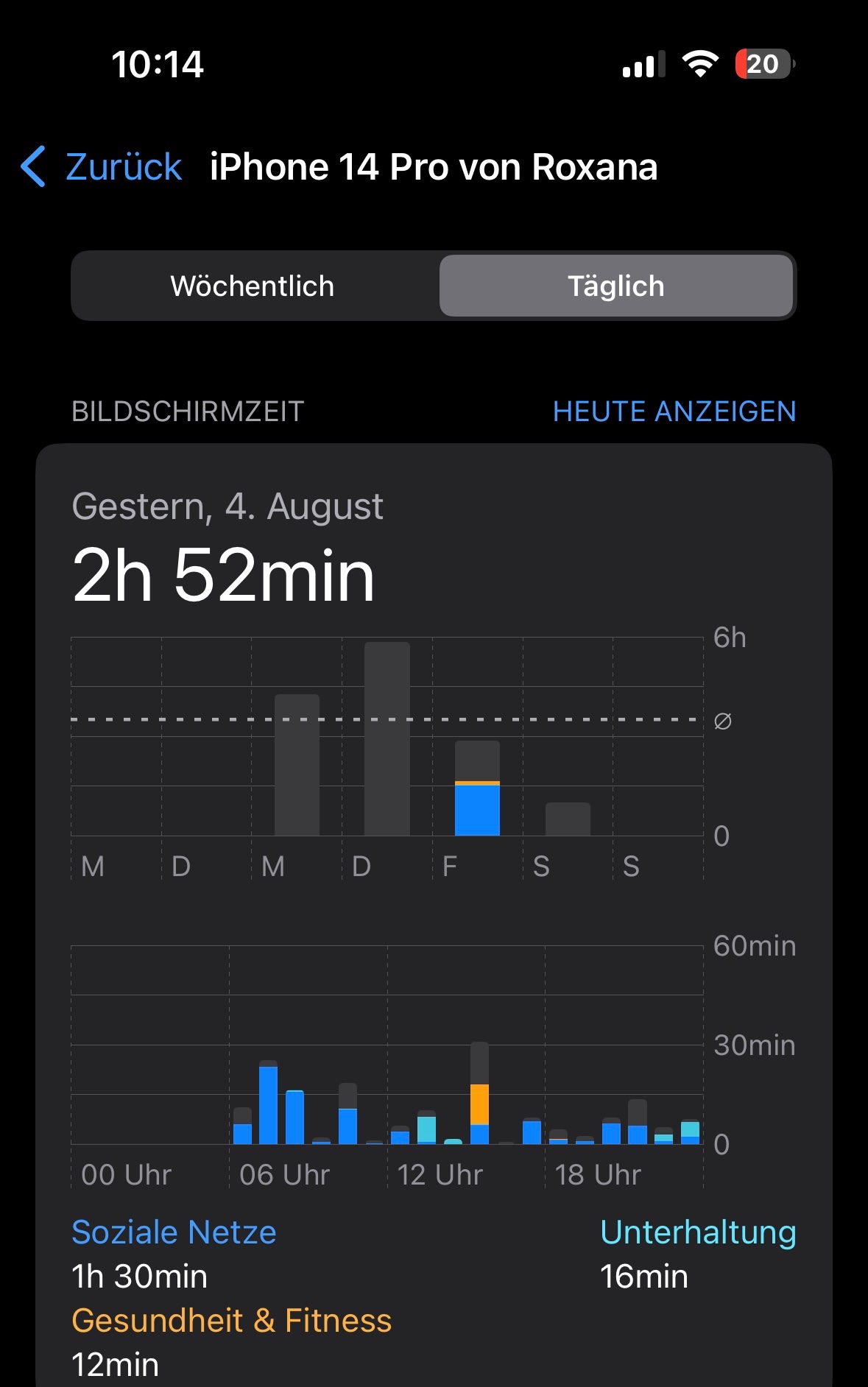 …ohne Post der Nutzung deiner Apps ist hier eigentlich keine Aussage möglich. Das hast du leider in deinem Screenshot zur Bildschirmzeit abgeschnitten.