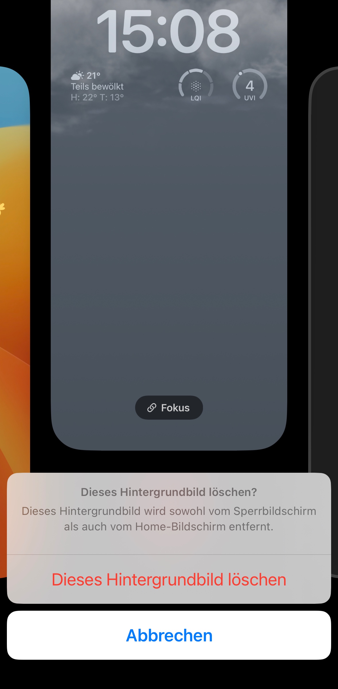 Wenn ich einen Finger auf den Sperrbildschirm lege, dann kommt bei mir "Zum Entsperren nach oben streichen". Ein Anpassen erscheint nicht. Da haben wir wohl den Unterschied gefunden und für den Moment womöglich auch die einzige Möglichkeit zum Löschen eines Hintergrundbildes. Vielen Dank für deine Unterstützung.