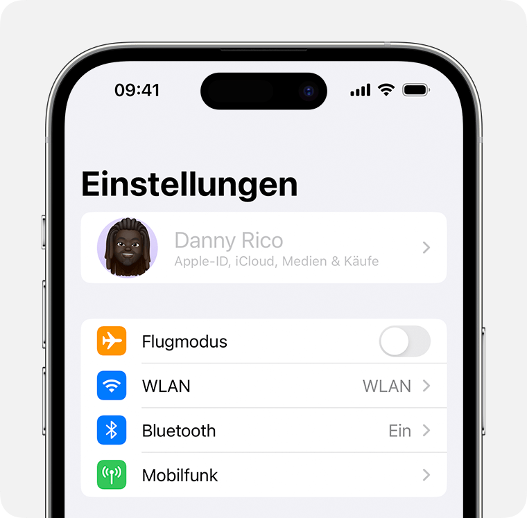 Wenn deine Apple-ID unter "Einstellungen" ausgegraut ist