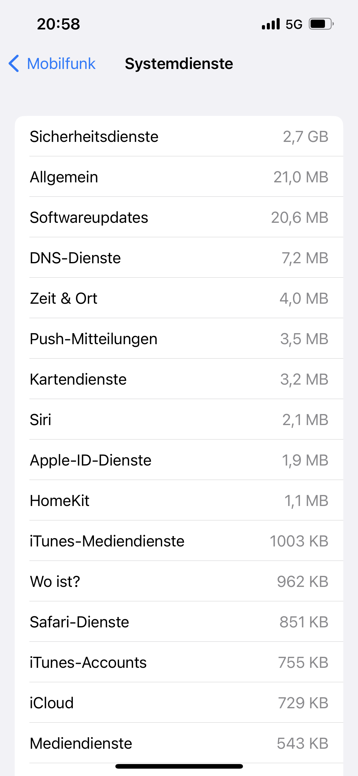 mein mobiler Datenverbrauch ist vergangenen Monat explodiert. Verantwortlich war laut mobilen Daten Systemdienste Unterpunkt Sicherheitsdienste (Datenvolumen ca. 50GB)