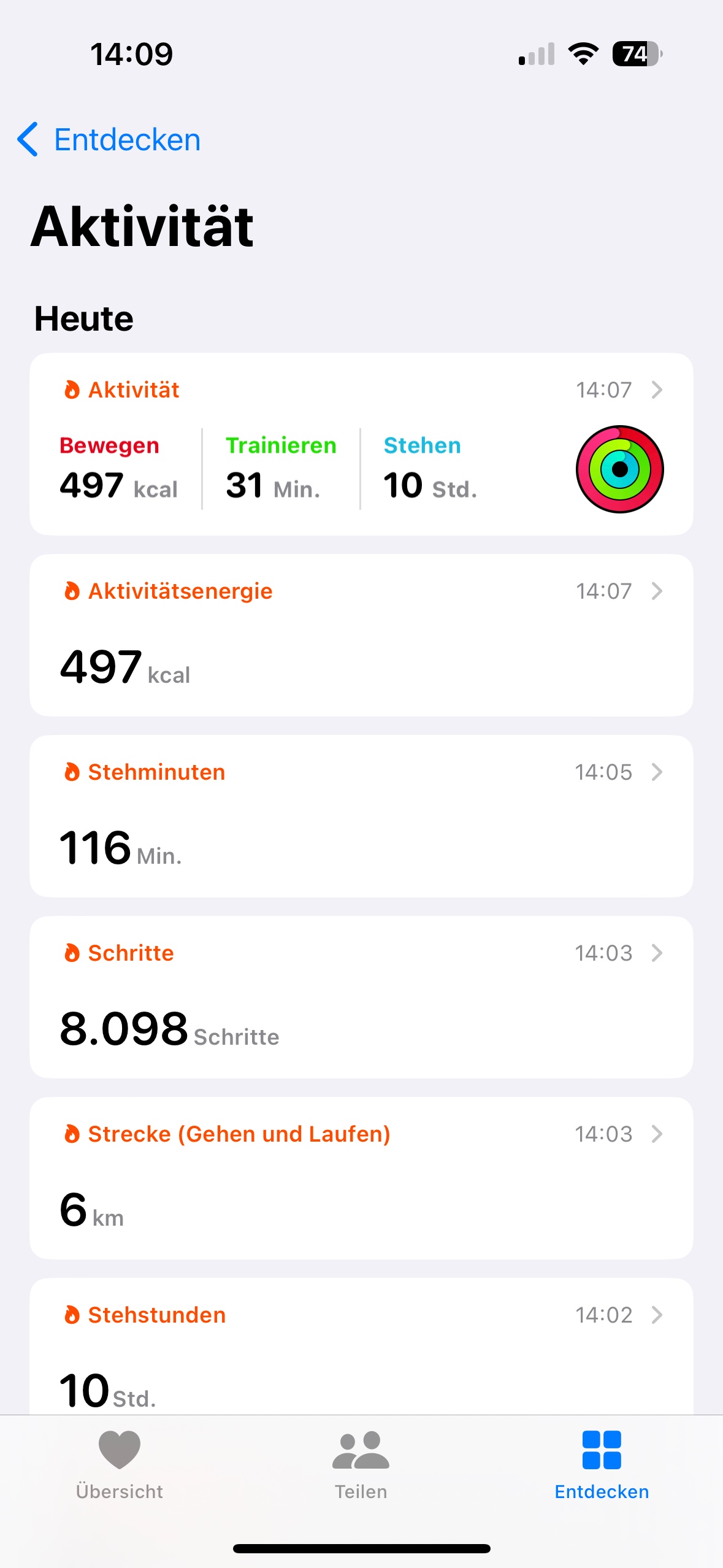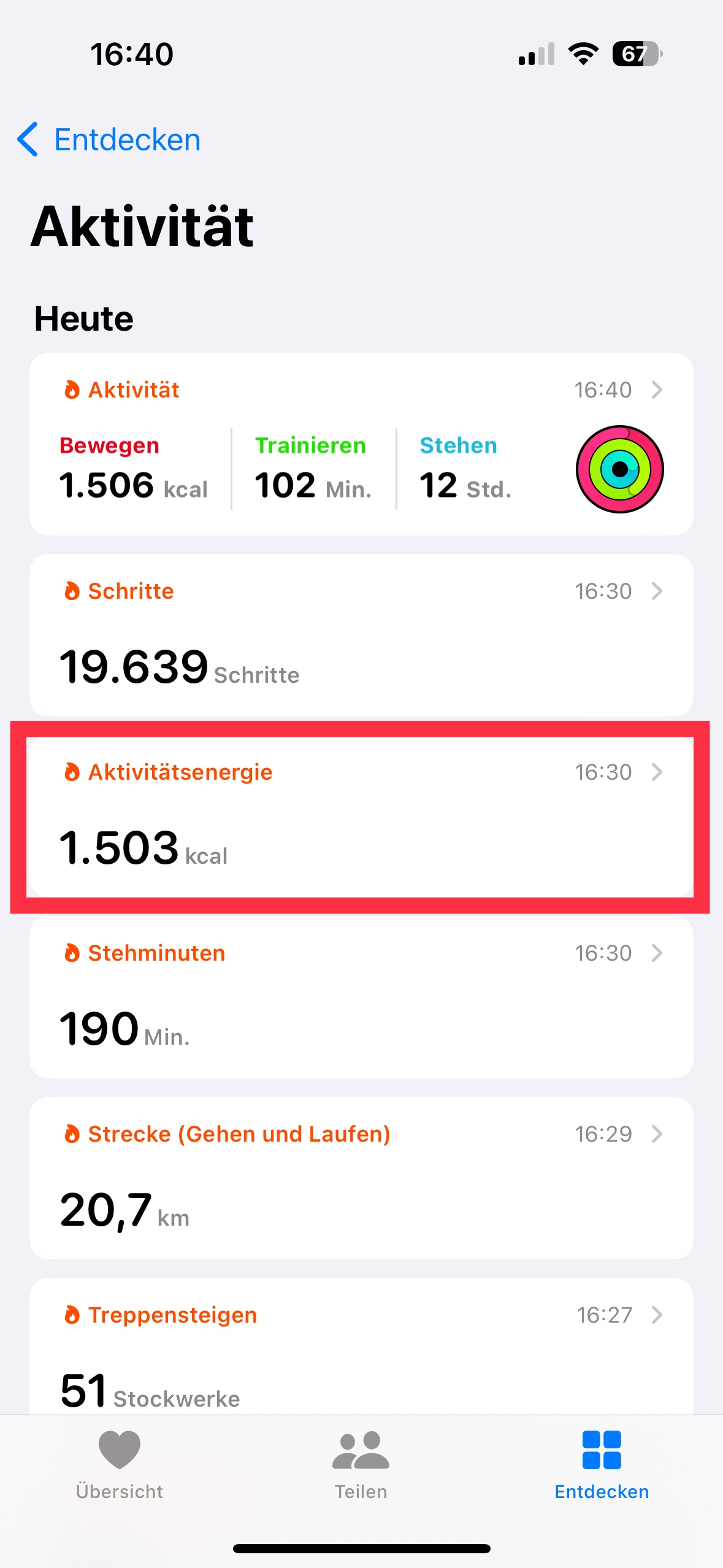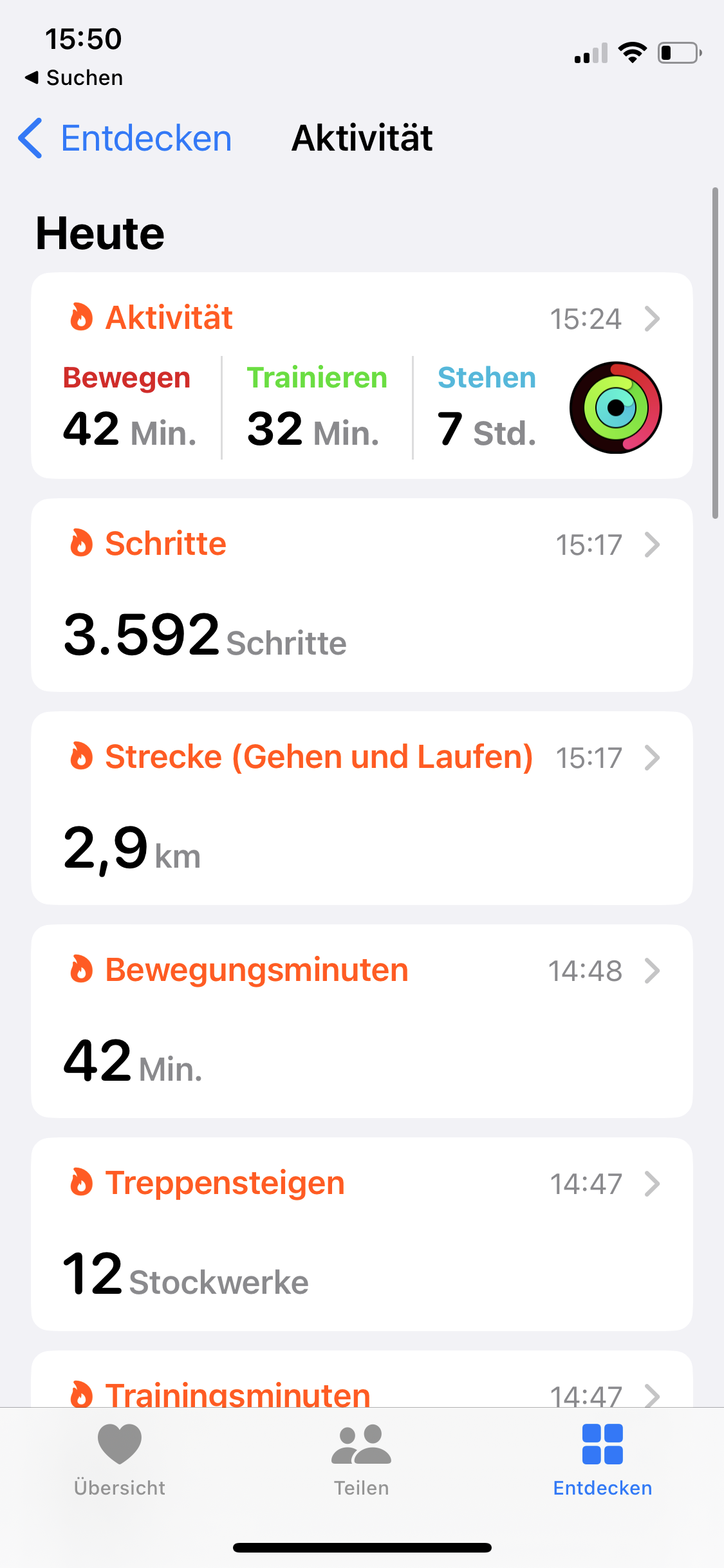 Health App -> Entdecken -> Aktivität: