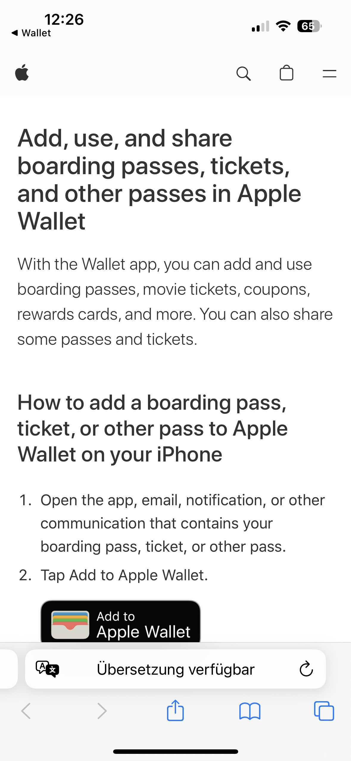 Hinterlegen von Eintrittskarten, Boardingspässen etc. funktioniert.