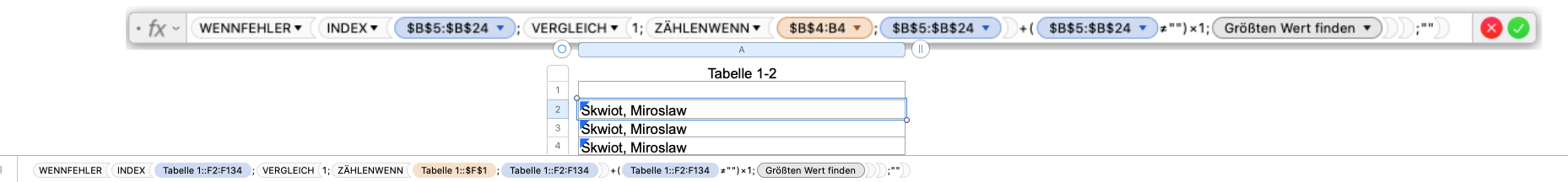 Verstehe, du möchtest also eine dynamische Liste erstellen, bei der die Autoren automatisch aktualisiert werden, sobald du neue Bücher hinzufügst, ohne dass Autoren von bestehenden Büchern "verloren" gehen. Das klingt nach einer spezialisierten Aufgabe, insbesondere, wenn du dies in Numbers (auf einem Mac) und nicht in Excel umsetzen möchtest.