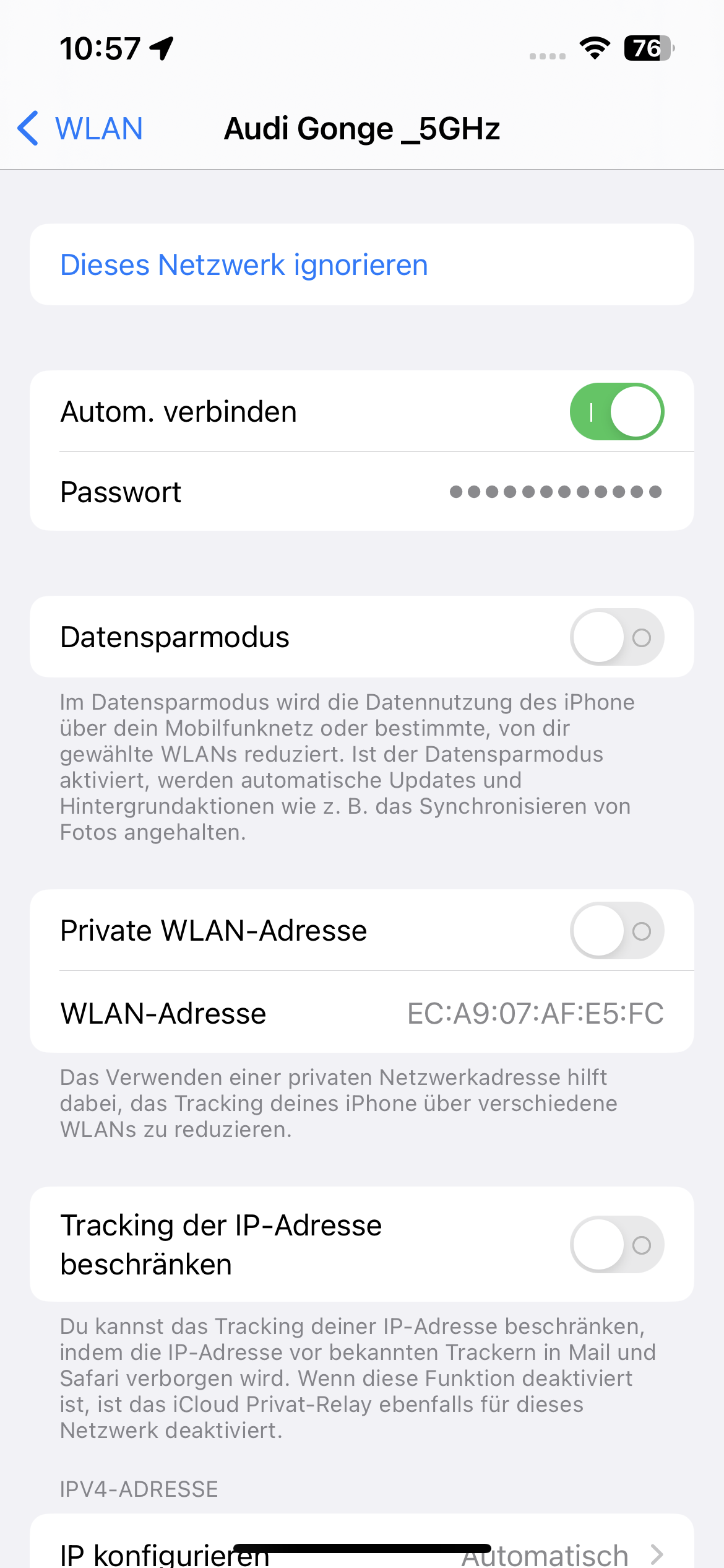 iPhone 14 Pro Max verbindet sich nicht mit dem WLAN Audi Connect