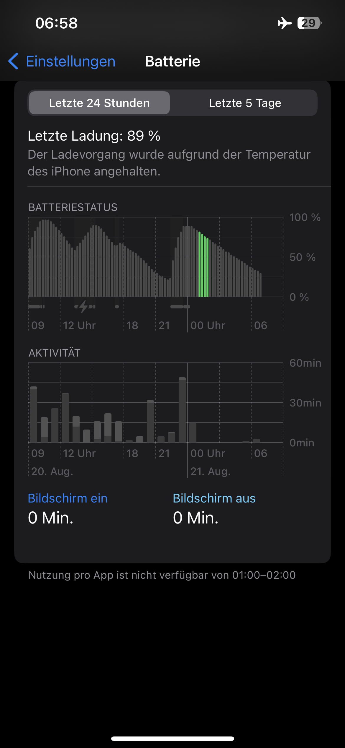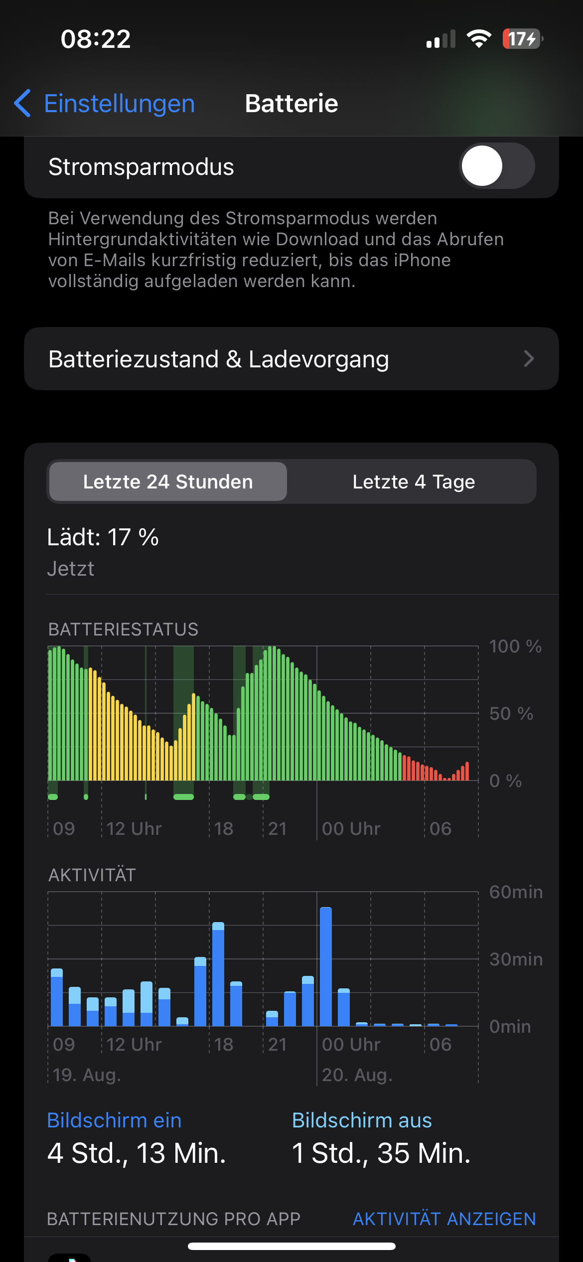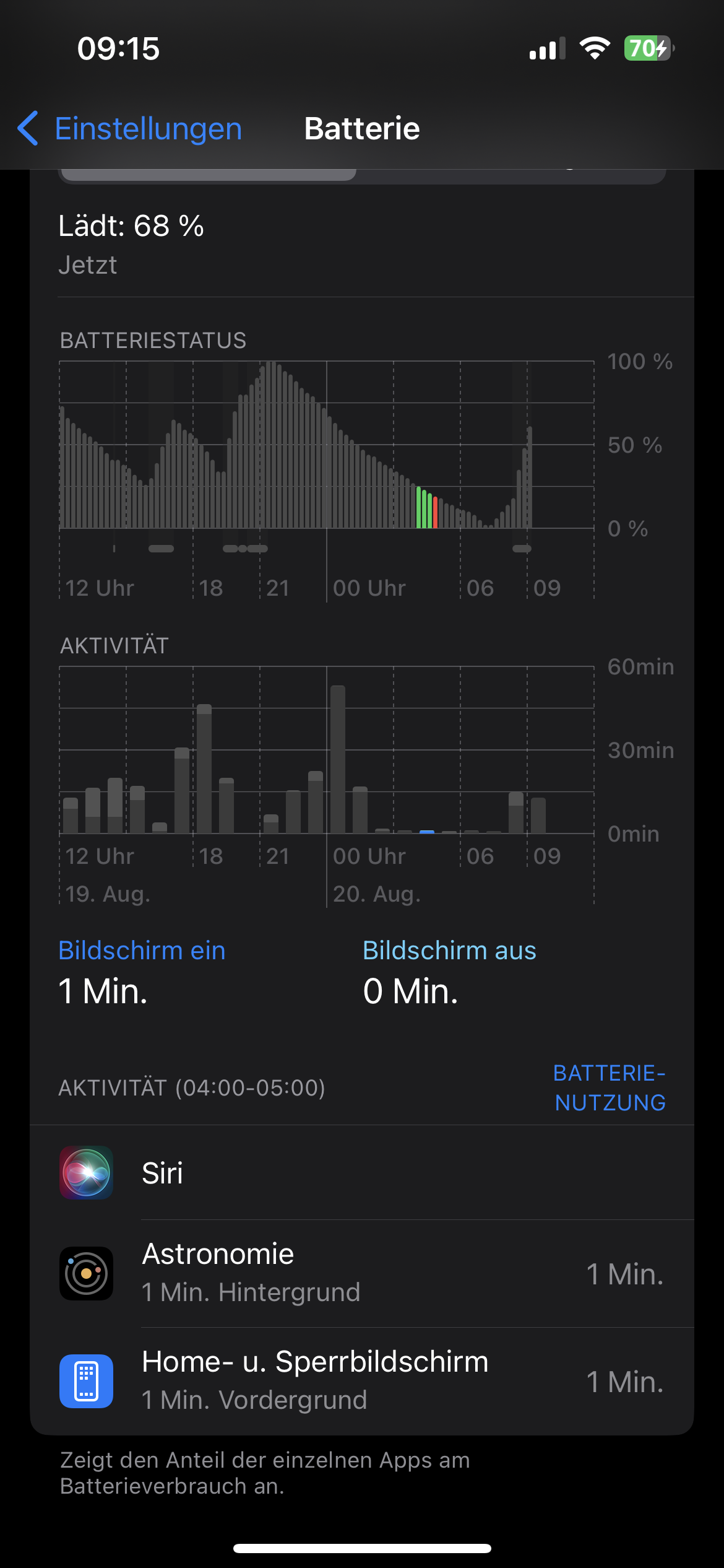 ich bin total verzweifelt. Seit ca. 2 Wochen entlädt sich das Akku meines iPhone 13 ungewöhnlich schnell. Besonders auffällig ist, dass es sich auch im ausgeschalteten Zustand bzw. über Nacht bei nicht-Nutzung entlädt. Bei Nutzung wird es ungewöhnlich warm.
