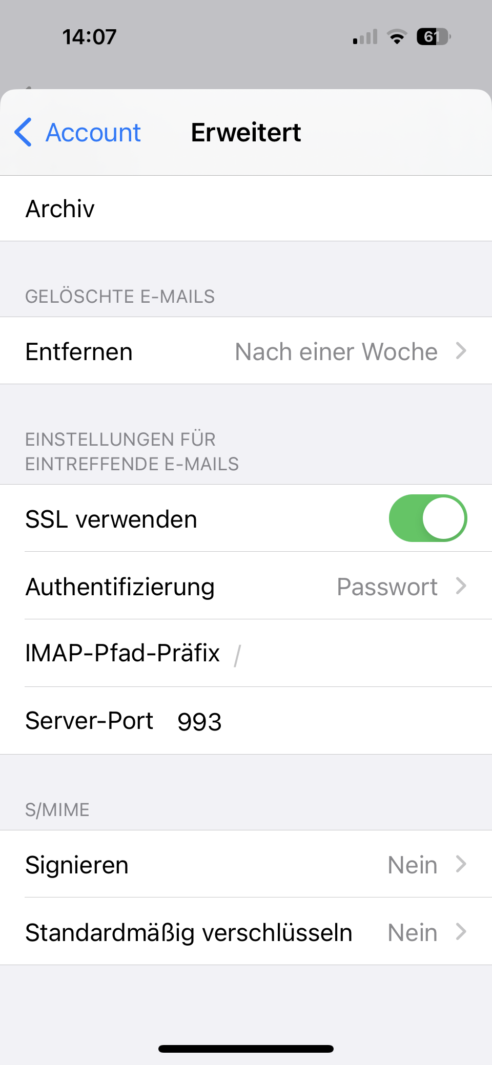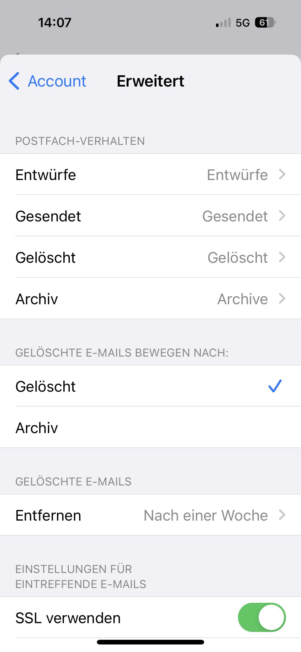 Ich habe die entsprechenden "Haken" in den Einstellungen im Iphone gesetzt ("Kopie gesendeter Email behalten", etc.). Das Problem besteht nicht mit anderen Email-Accounts, die ich in die Mail-App des selben Iphone eingebunden haben (e.g. Gmail), hier klappt die Synchronisation "rauf" und "runter".