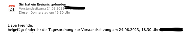 Siri erkennt Ereigniszeiten in E-Mails in Apple Mail falsch