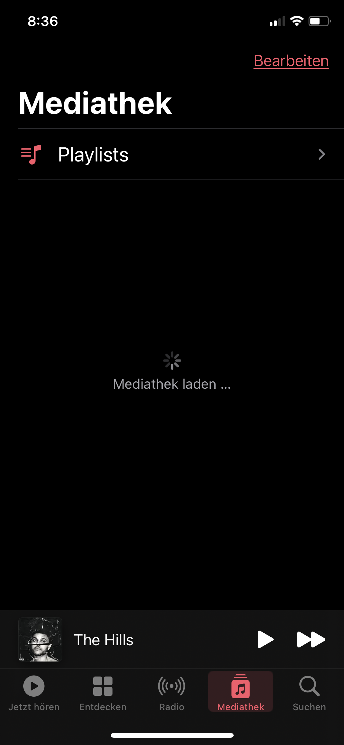 Musik Mediathek lädt auf iPhone nicht, jedoch auf allen anderen Geräten