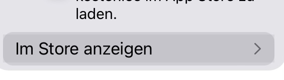 Diese Anfrage bekommen wir auf allen unseren Geräten, die kommt zuverlässig an, aber das Freigeben ist seit einiger Zeit von meinen Geräten aus nicht mehr möglich und jetzt auch nicht mehr von den Geräten meiner Frau aus. Das Problem ist, dass in der Anfrage keine Option zum Freigeben mehr angezeigt wird, es gibt nur noch „Im Store anzeigen“, und dort kann ich dann die entsprechende App nur auf meinem eigenen Gerät installieren oder starten (wenn sie bei mir bereits installiert ist). Das Ganze sieht dann so aus: