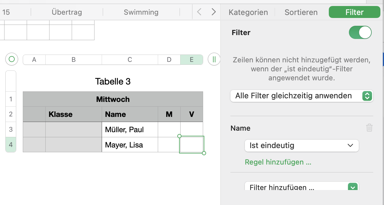 Befehl „Wenn, Dann“ schlägt im Numbers fehl