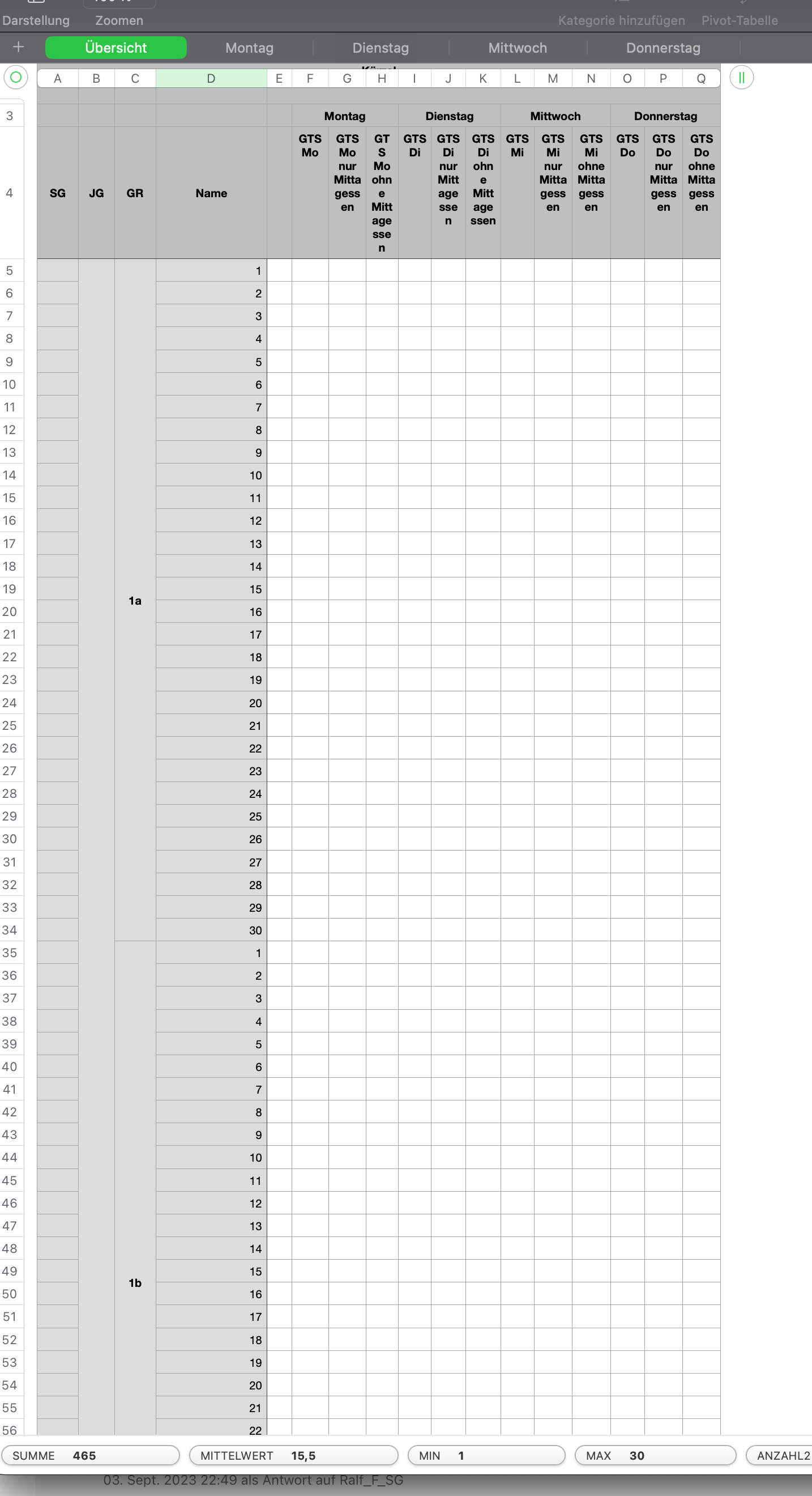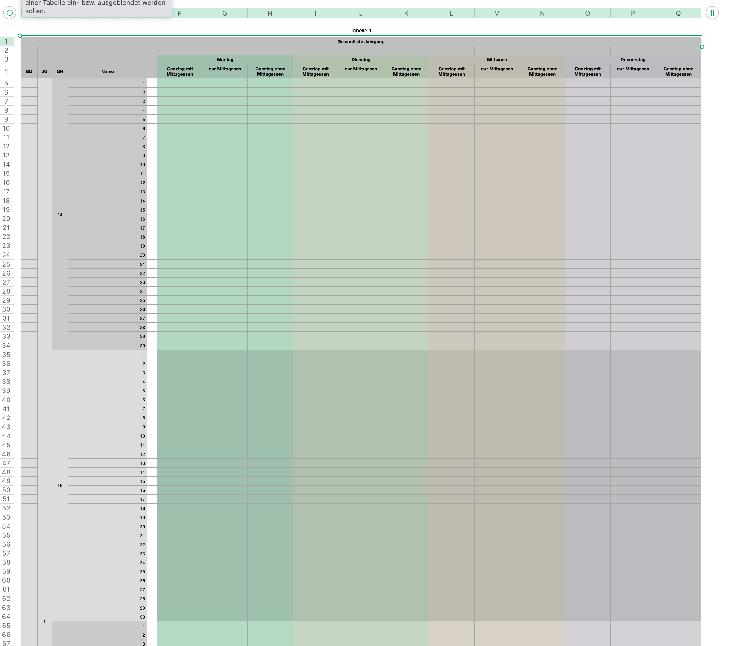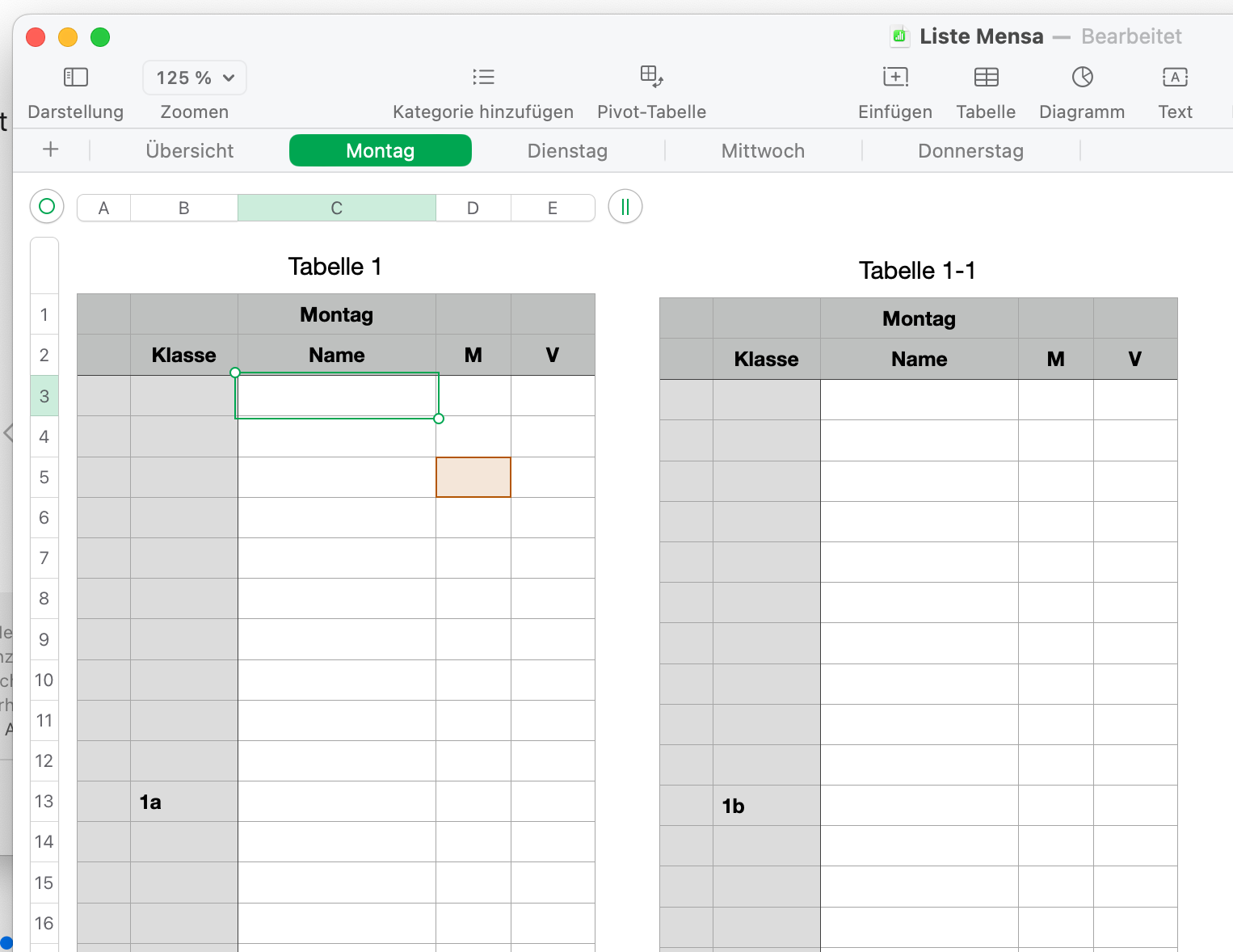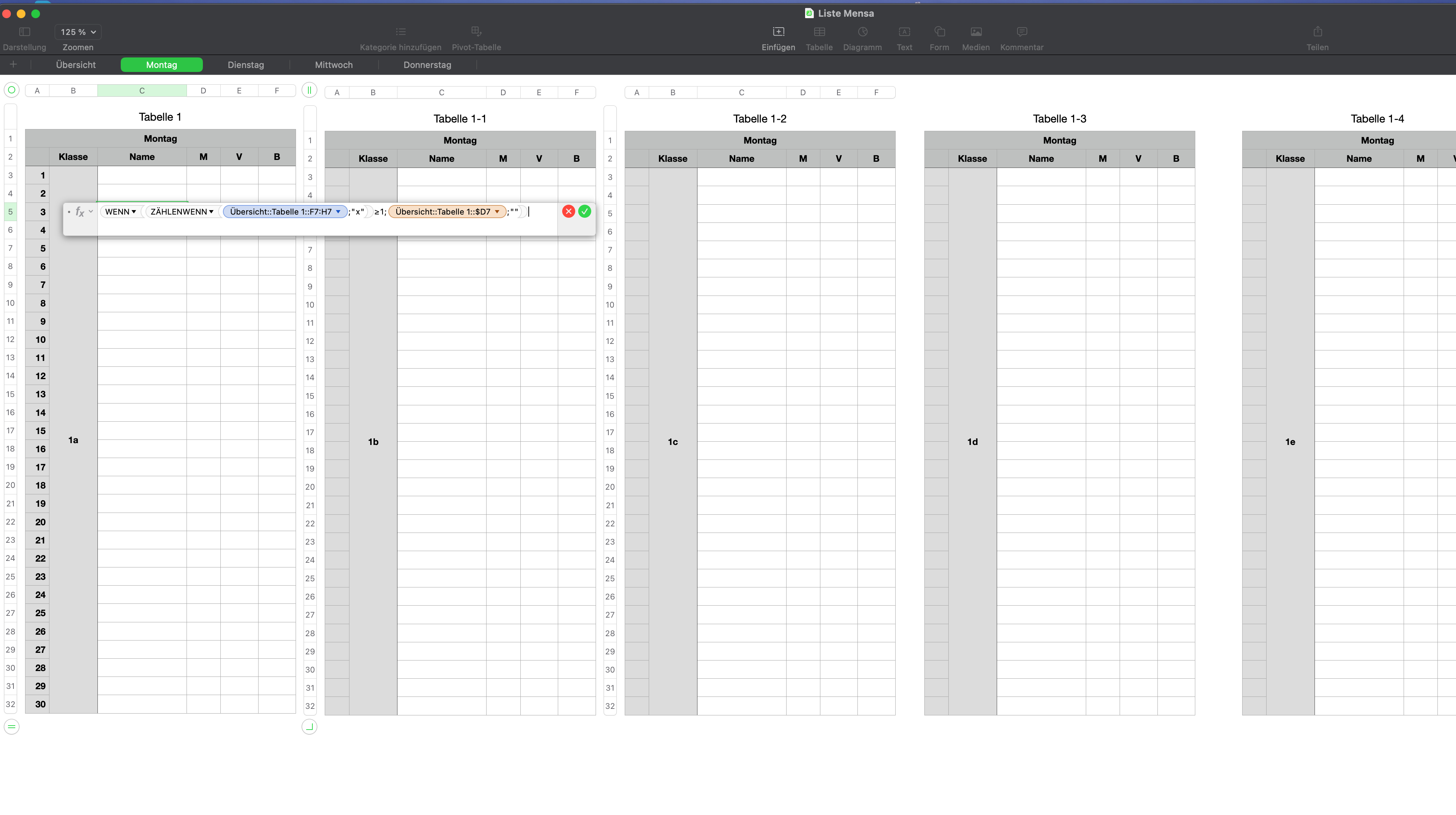 Ich habe eine Tabelle erzeugt, die aus mehreren Blättern besteht.