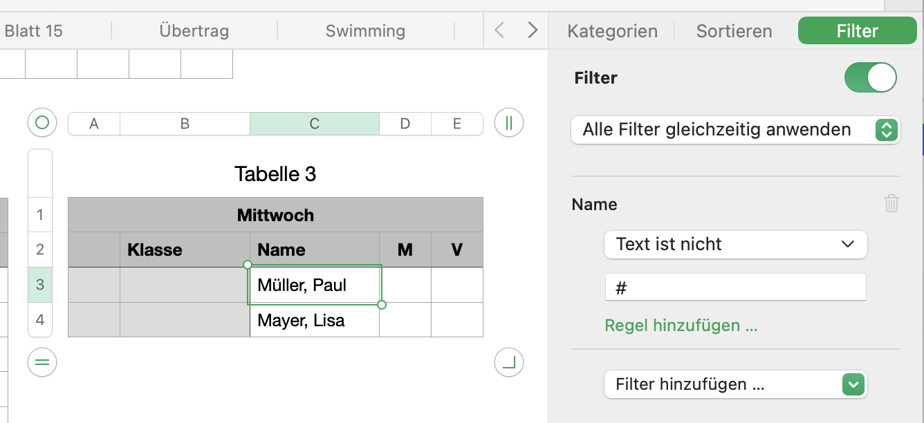 Hier habe ich den Filter für Zellen verwendet.