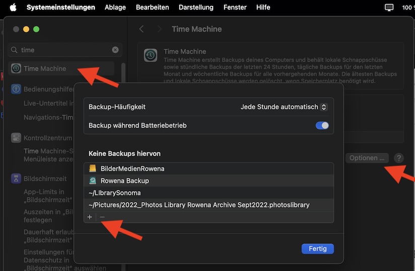 Acht aber darauf, dass du in den Einstellungen für Fotos auf dem Mac auf keinen Fall "Optimiere Mac Speicher" aktiviert hast. Sonst werden nicht alle hochaufgelösten Originale auf dem Mac gespeichert und Time Machine kann nicht die Bilder selbst sichern, sondern nur die Struktur der Fotosmediathek.