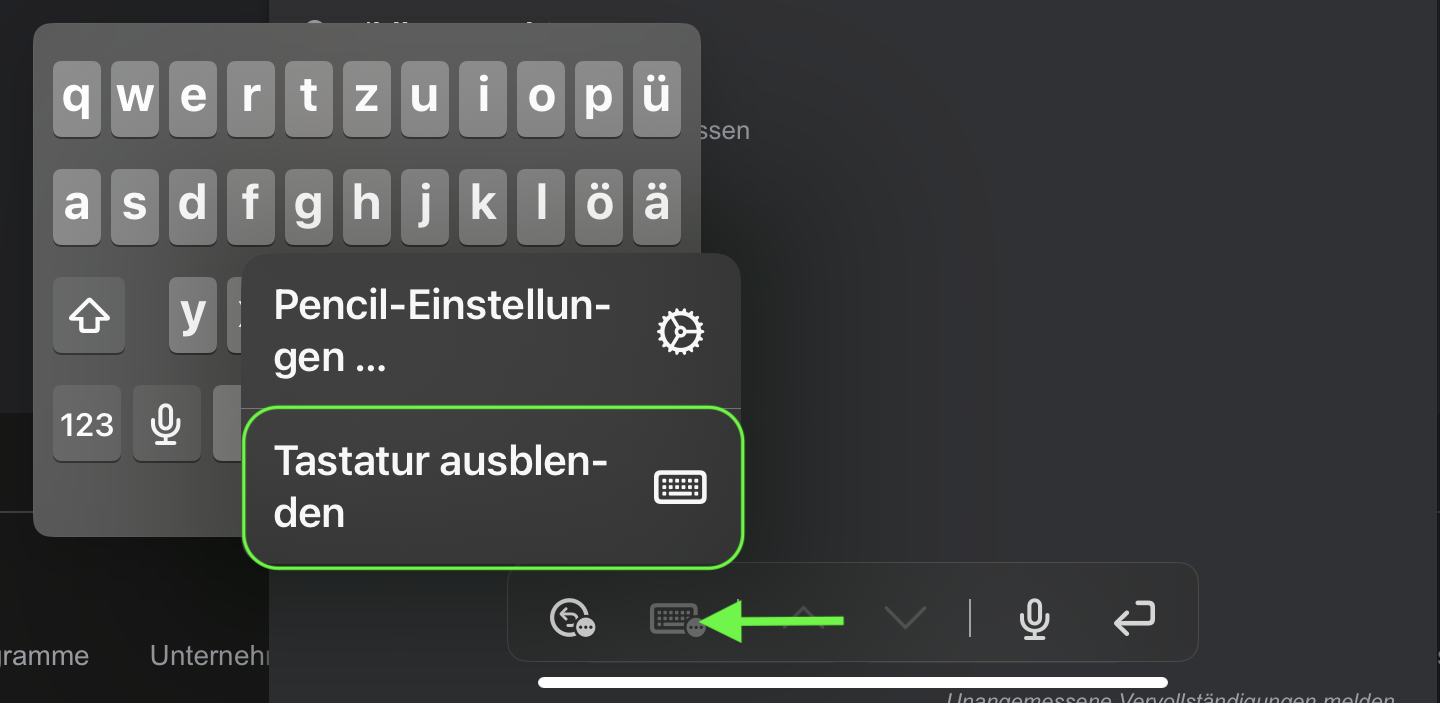 - Verkleinere die Tastatur, indem du ihre Ränder mit zwei Fingern zusammendrückst.