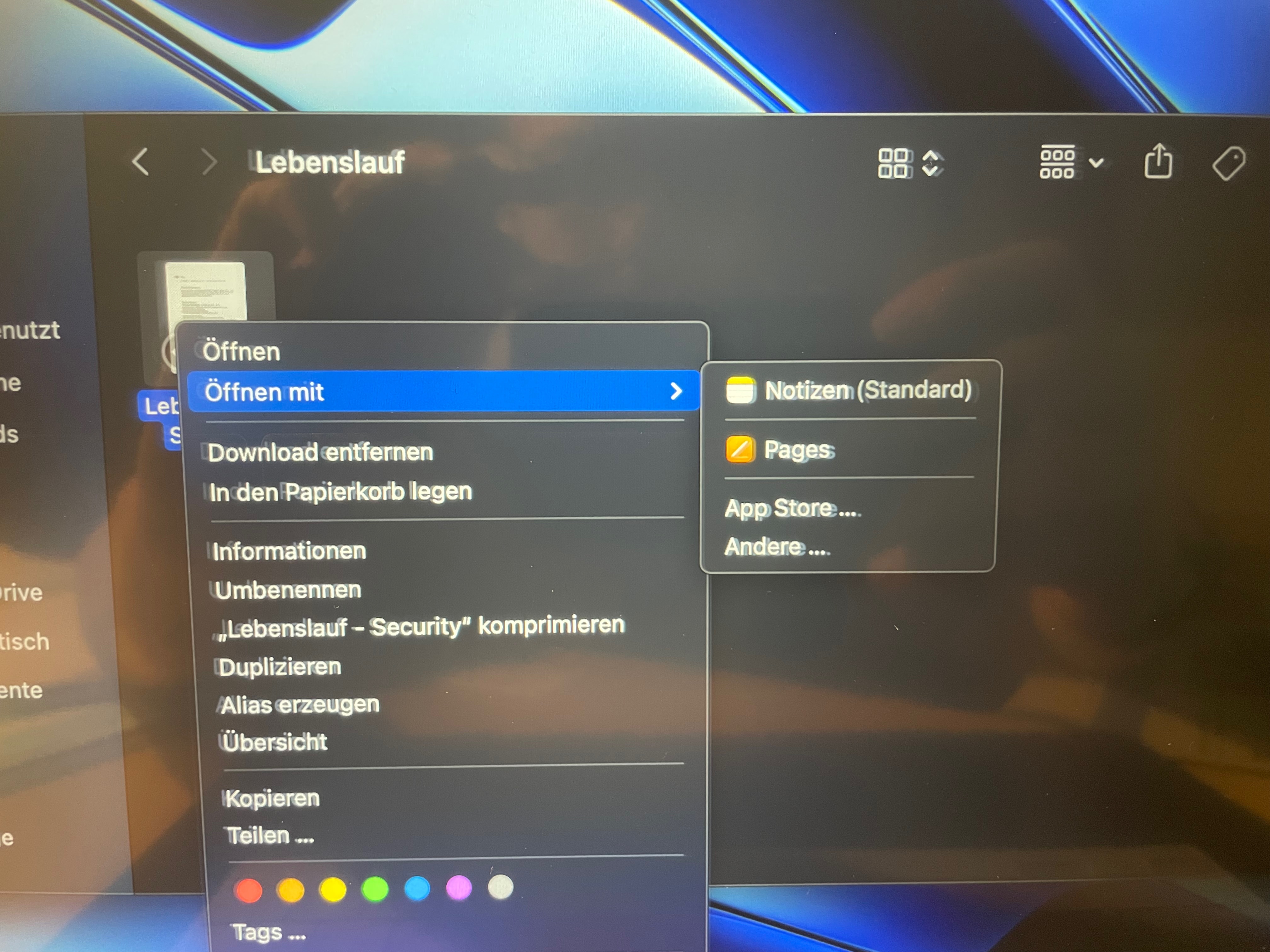 hab aktuell die kleine Misslage, das die Notizen App standardmäßig meine Dokumente "öffnet". Ich hätte gern das Pages als Standart zur Öffnung von Dokumenten, wenn ich diese direkt mit Doppelklick öffnen möchte.