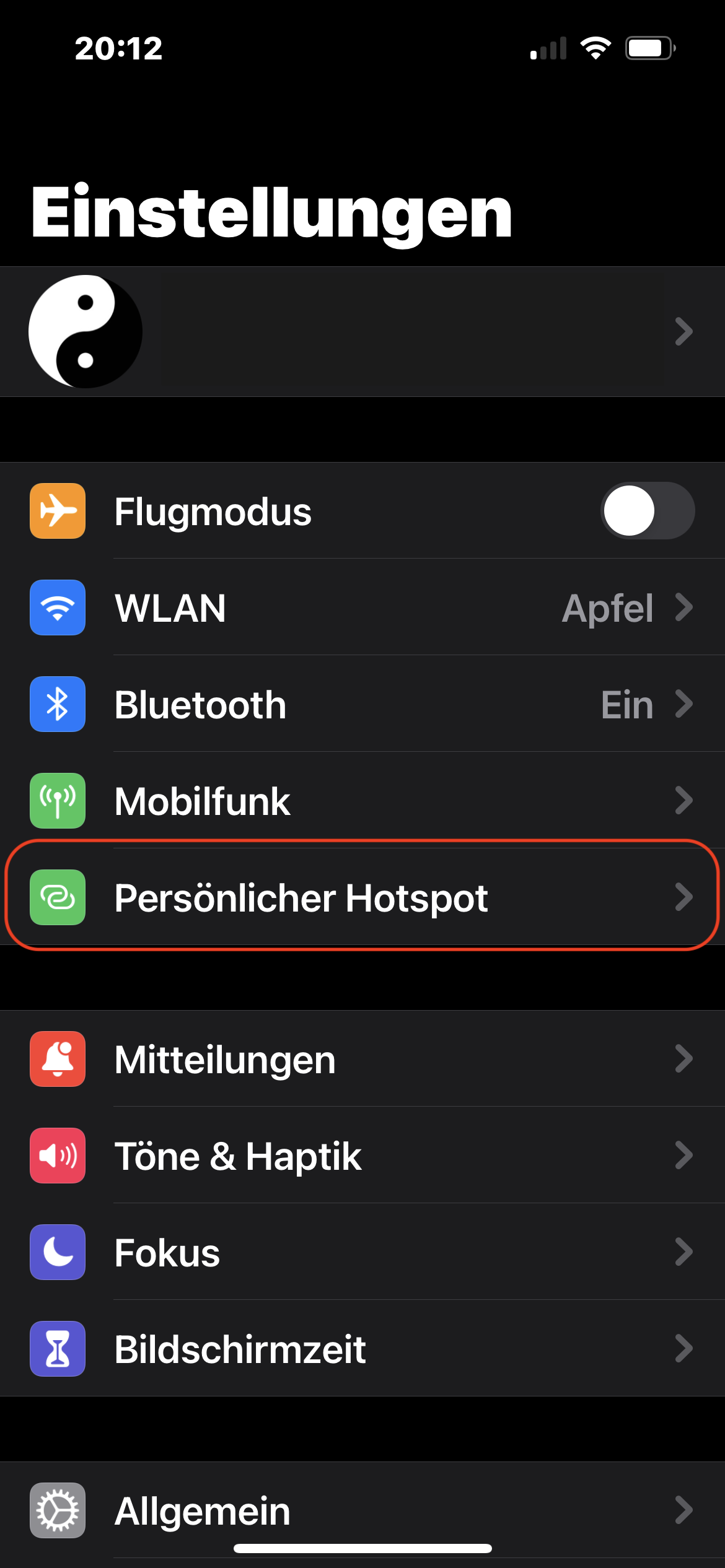 Die Möglichkeit zur Einrichtung eines persönlichen Hotspots sollte auf dem iPhone 12 Pro unter