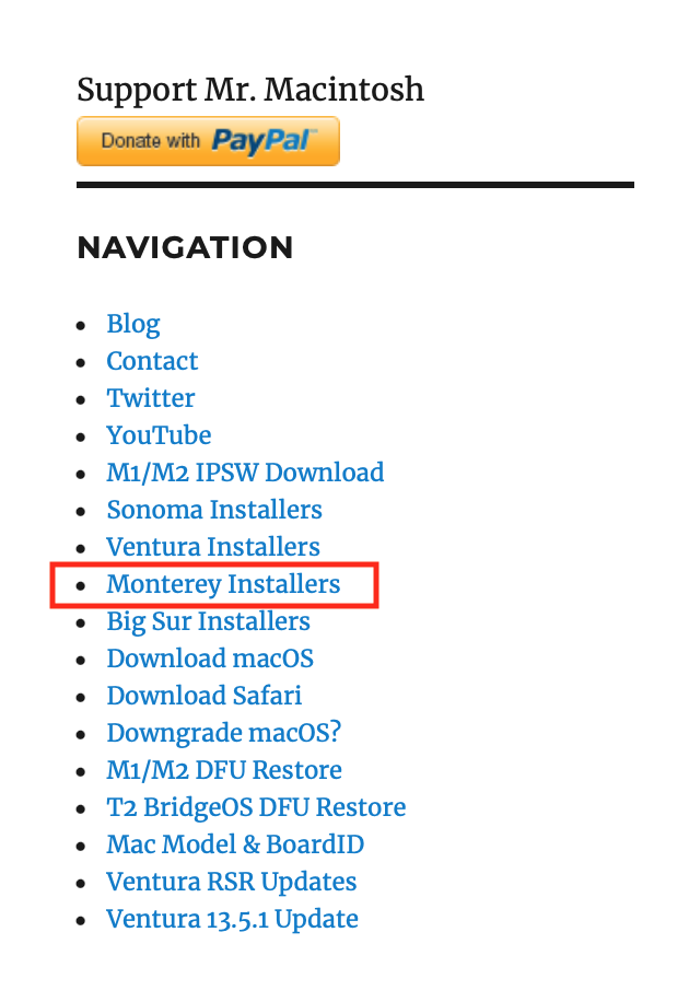 Alternativ kannst du den Monterey-Installer von der nachfolgenden web site "mrmacintosh" direkt in den Programmordner laden,