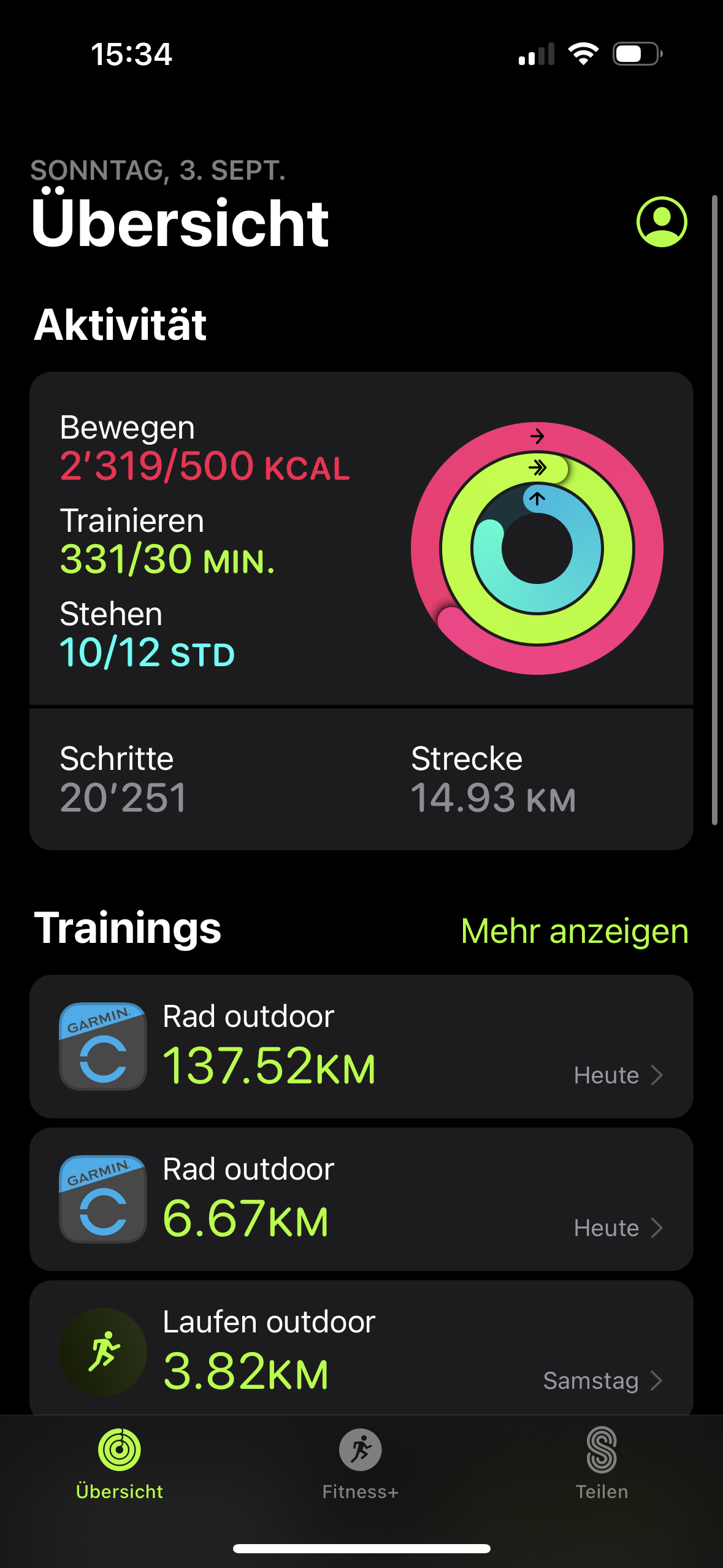 Ich habe heute mit einem Garmin Gerät Fahrradgefahren und habe dort die Kalorien messen lassen. Normalerweise synchronisiert diese ziemlich schnell mit der Fitness App. Dies hat er diesmal auch gemacht, aber die Kalorien synchronisiert er nicht. Ich habe alles schon versucht z.B. Apps schliessen, die Apps neu laden, Geräte ein und ausschalten, Apple Watch entkoppelt usw. Weis jemand woran das liegen kann?