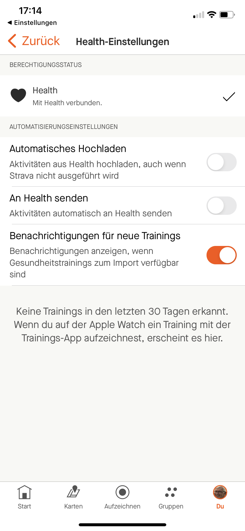 Fitness App zeigt im Bereich Trainings die Werte Rad outdoor von STRAVA nicht mehr an