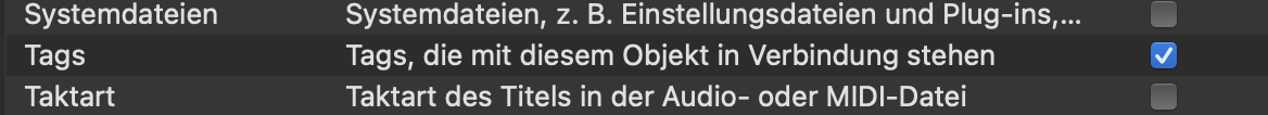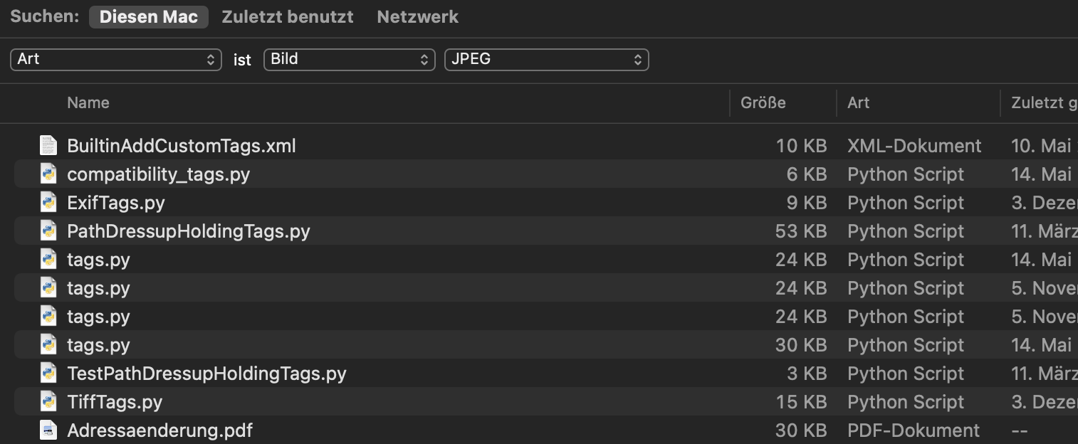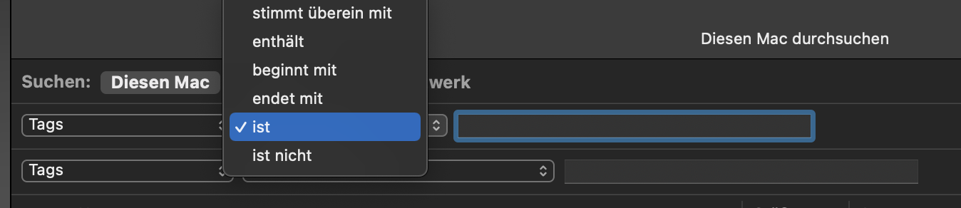 - Ein Auswahlmenü kann nützlich sein, wenn du nach einer Kombination von Tags suchst oder wenn du Dateien ausschließen möchtest, die mit einem bestimmten Tag versehen sind.