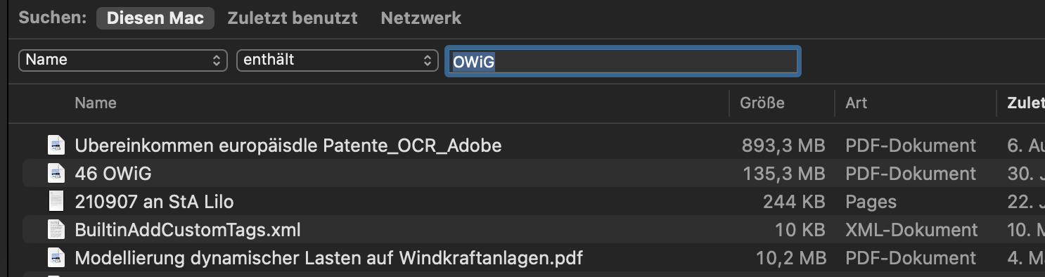 - "stimmt überein mit" und "ist" könnten ähnliche Funktionen haben, aber macOS bietet oft verschiedene Formulierungen, um verschiedene Suchkriterien oder -modi zu unterscheiden.
