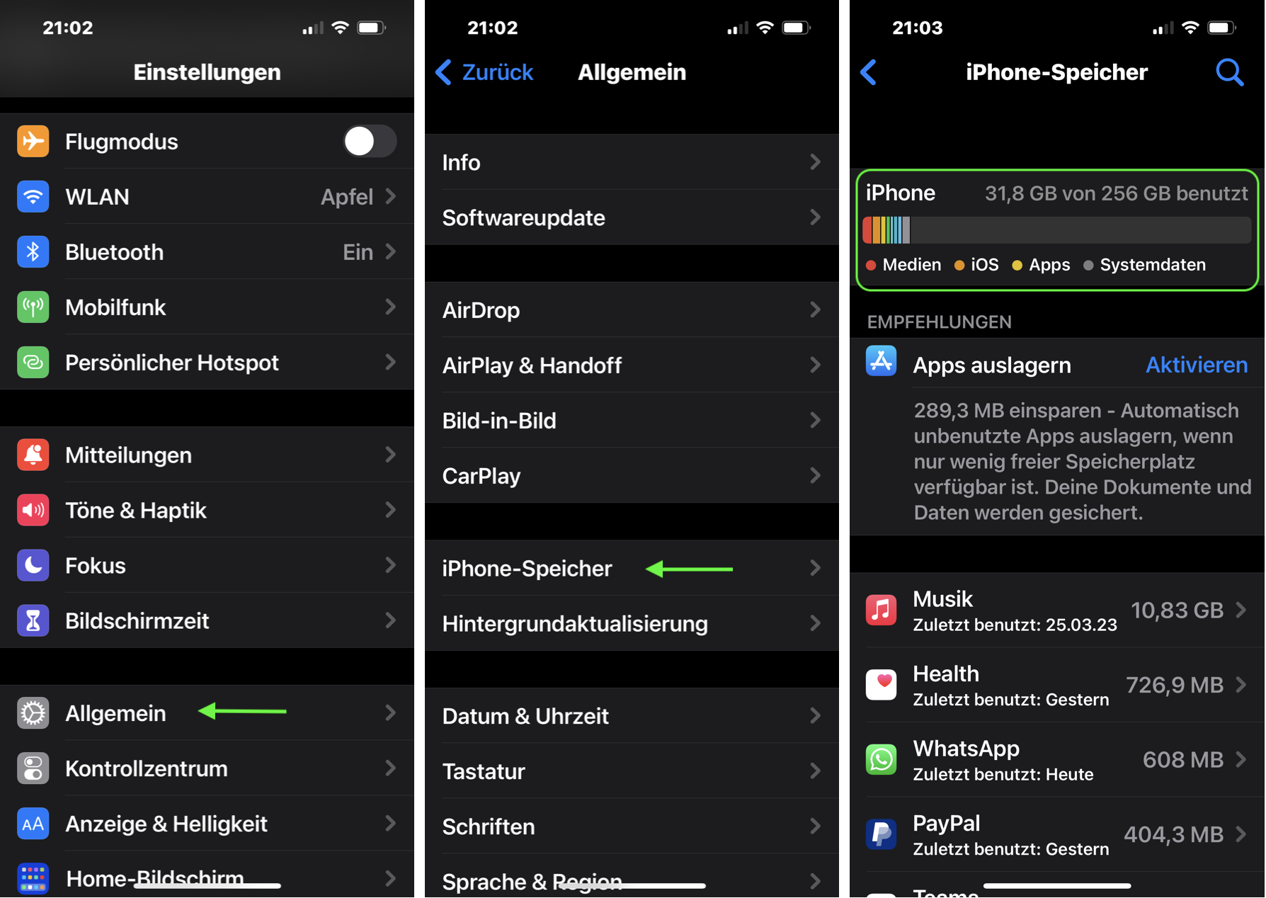 So überprüfst du den Speicherplatz deines iPhones. Gehe zu