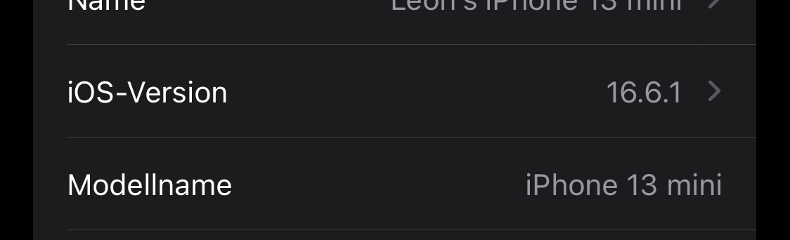 Ich benutze ein iPhone 13 mini mit 128GB Speicher und iOS 16.6.1