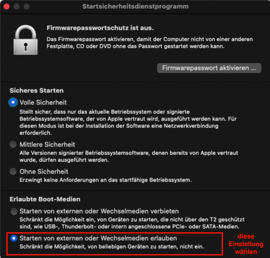 System mit bootbarer Festplatte misslingt wegen Sicherheitseinschränkung, wohl T2-Chip verhindert…?
