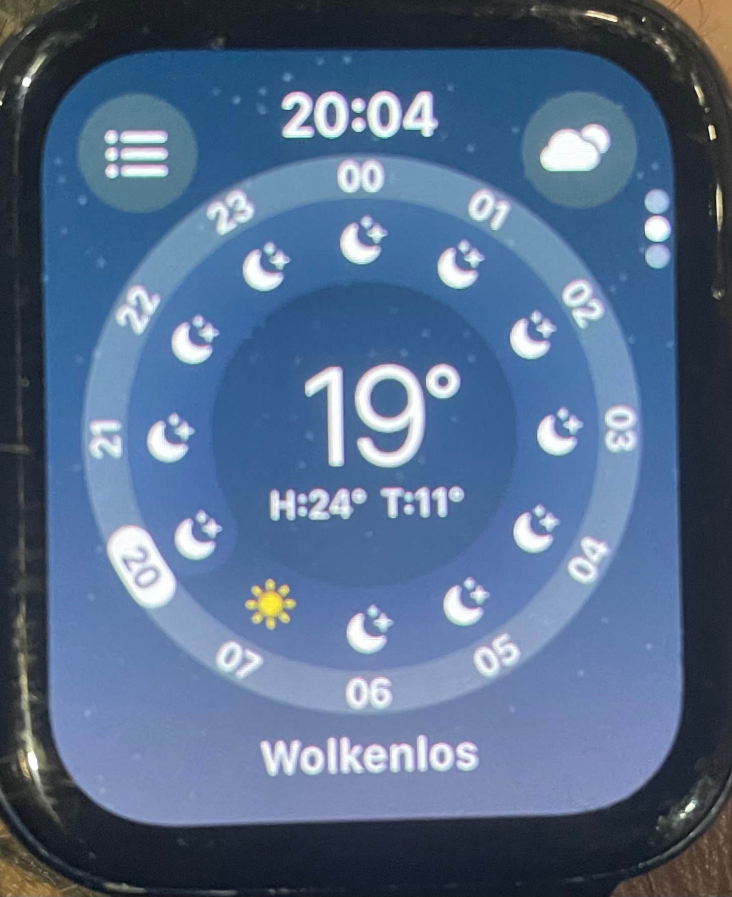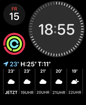 Ich wünsche das gleiche Hintergrund auf Apple Wacht als Hintergrund mit Zifferblatt mit aktuellen Wetter von Standort