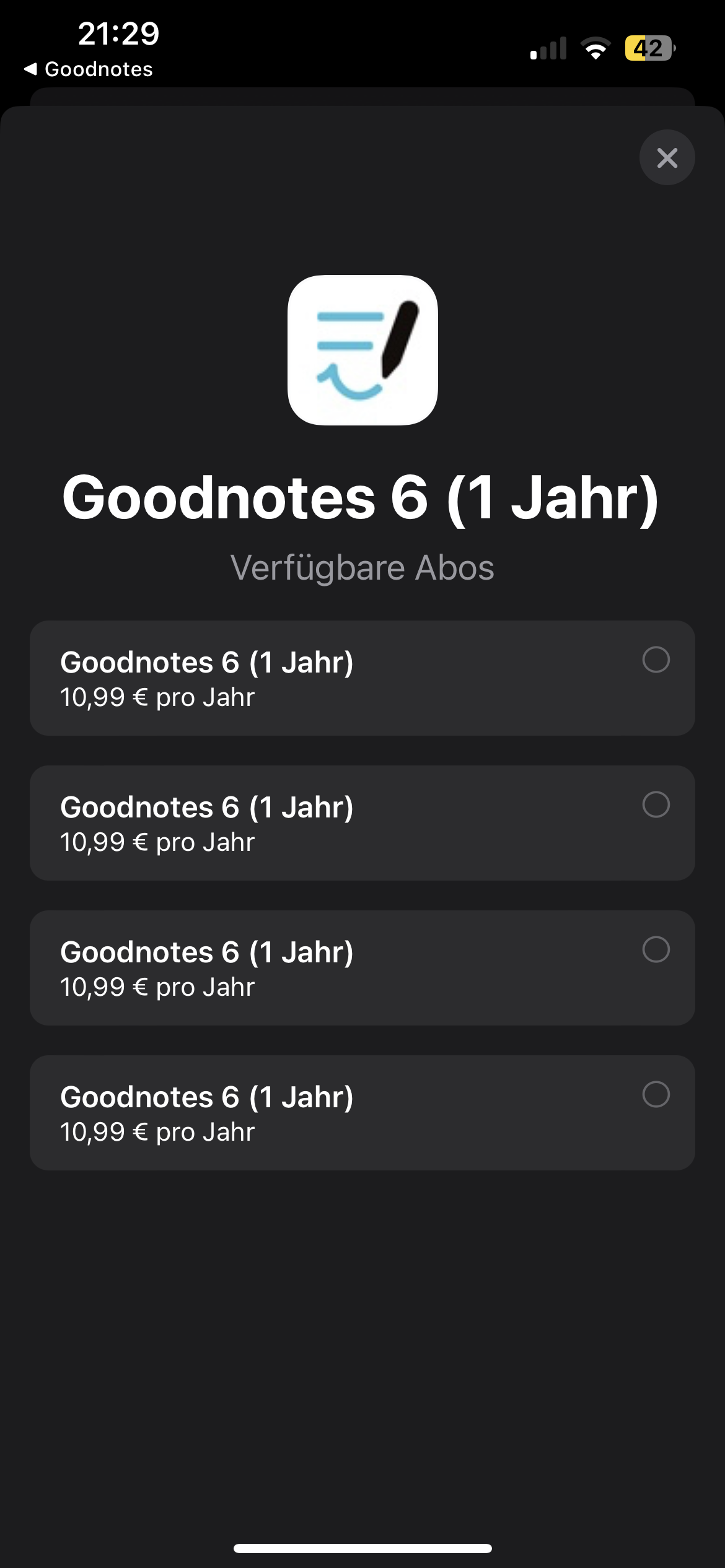 Ich möchte mir zum ersten Mal goodnotes herunterladen allerdings wird von mir verlangt das ich das Abo jedes Jahr erneuern muss. Wie ist das denn bei euch so?