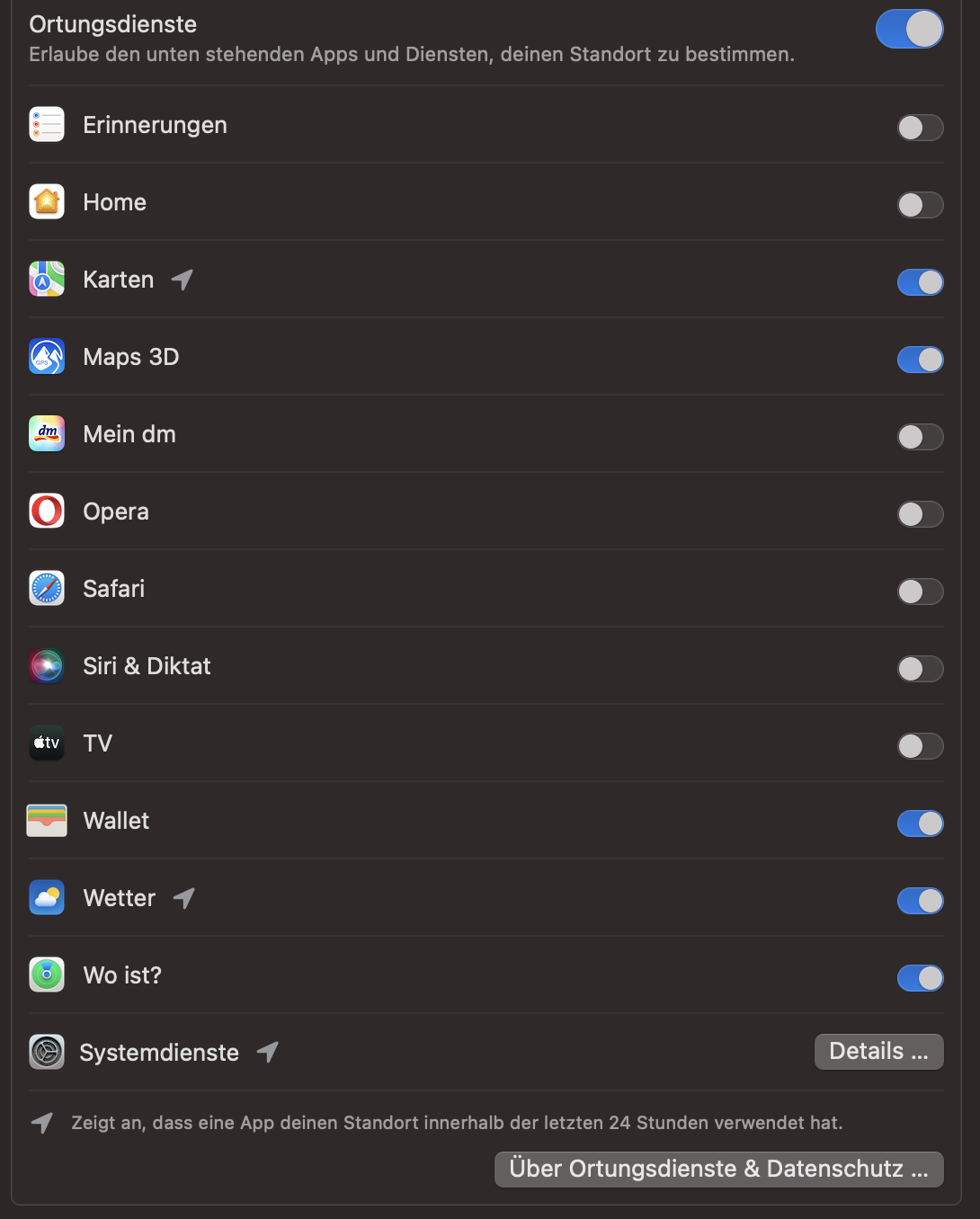 Mit diesen Einstellungen müsste doch die Karten App funktionieren? Meine andere Karten App - „Maps 3D“ - funktioniert tadellos. Da ich „Map 3D“ oft zu Planung von Outdoor-Routen nutze, ändere ich an den oben genannten Einstellungen generell nichts.
