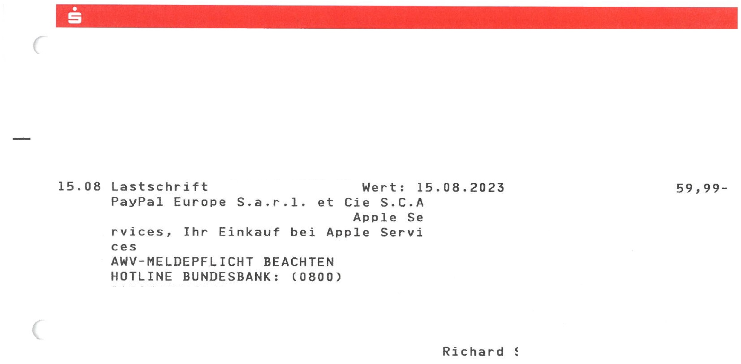 Am 15.8.2023 wurde ein Betrag von Apple Service Nr. *** in höhe von 59,99 € abgebucht. Können Sie mir sagen, um welche Leistung es sich dabei handelt?