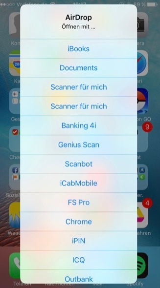 Ich habe das Problem, das in iOS 17 das Menü, das erscheint wenn man ein Airdrop Dokument erhalten hat, nicht mehr auftaucht.