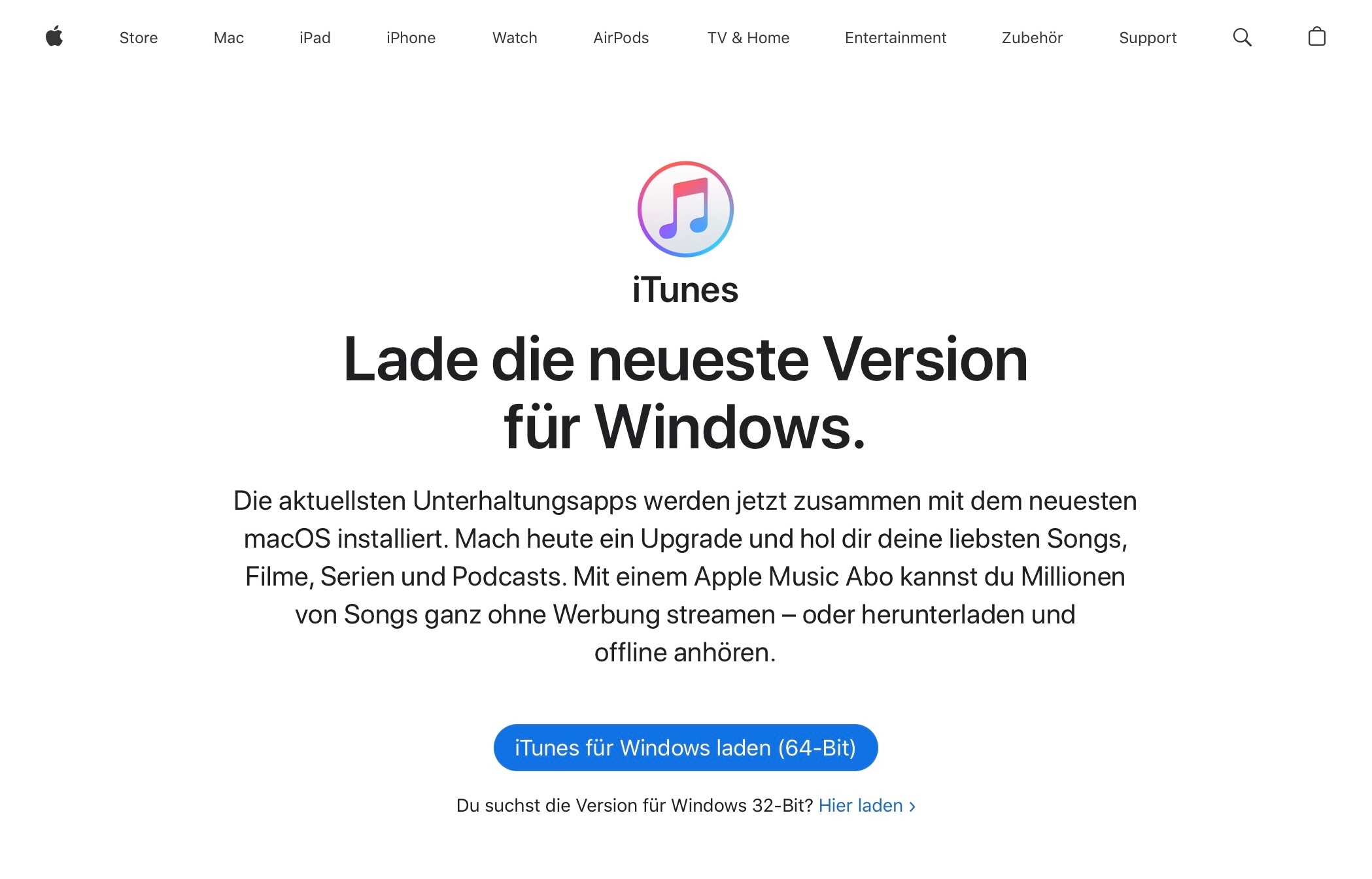 Hatte dann versucht den Weg über einen Computer zu iTunes zu gelangen, was auch funktionierte.