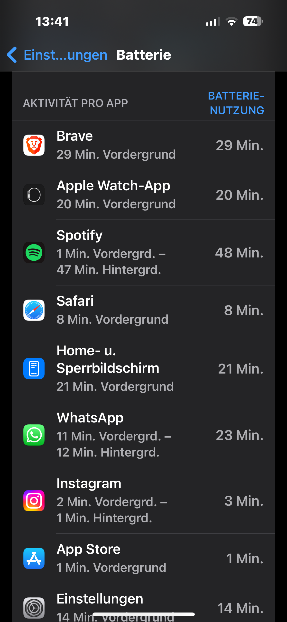 Habe auch Hintergrundaktualisierung aus, Bildschirm auf dunkel, 5g automatisch, ortungsdienst weitgehend aus bis auf bei Navi.