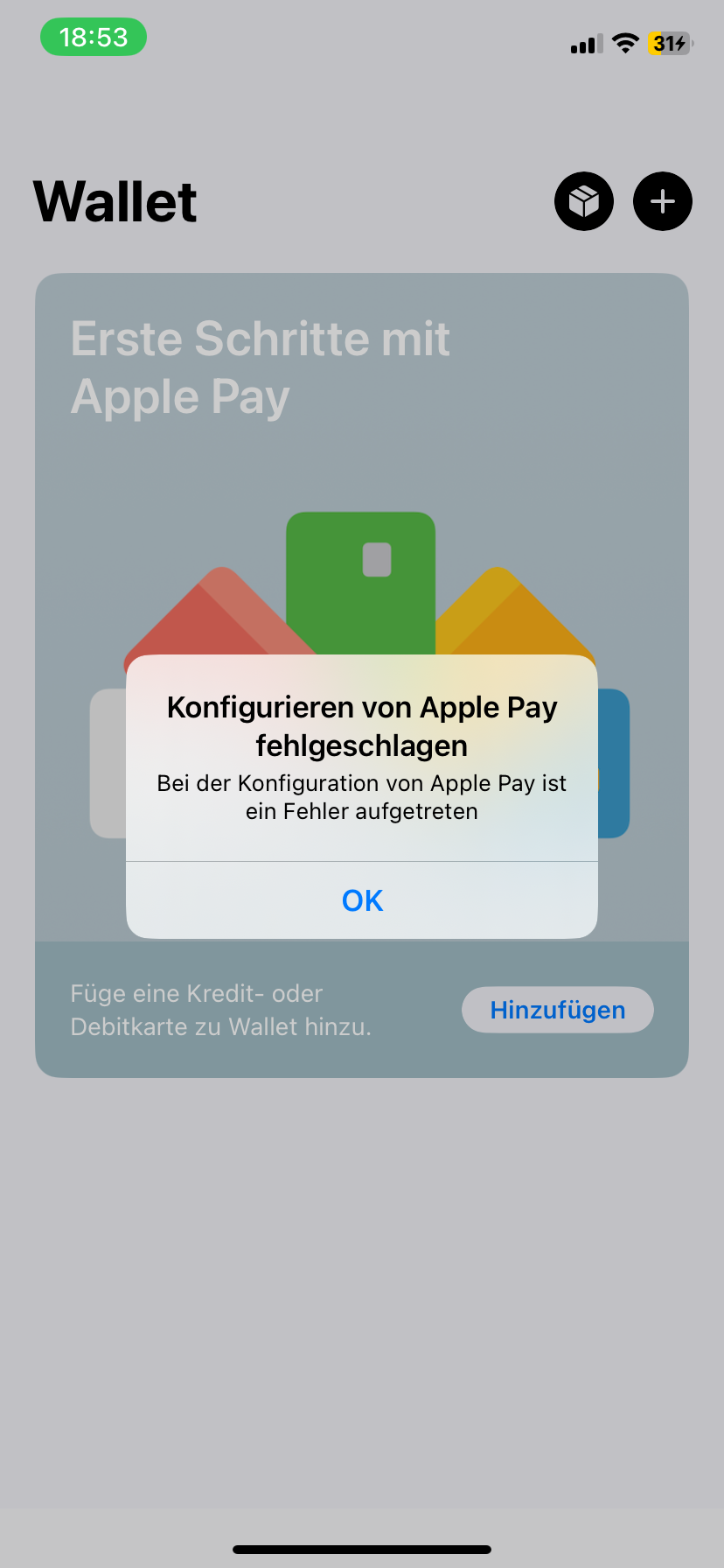 Bei mir wird immer angezeigt das sie Apple pay nicht konfigurieren lässt