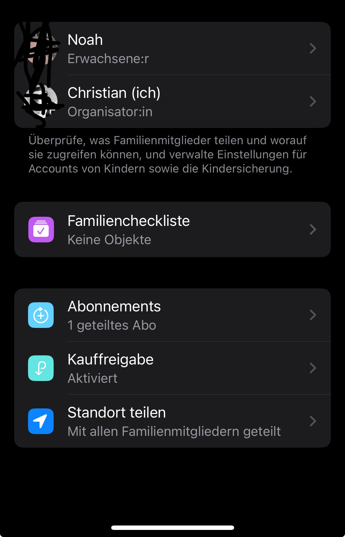Die Konfiguration ist ok. Habe schon die Familienfreigabe gelöscht und wieder angelegt.