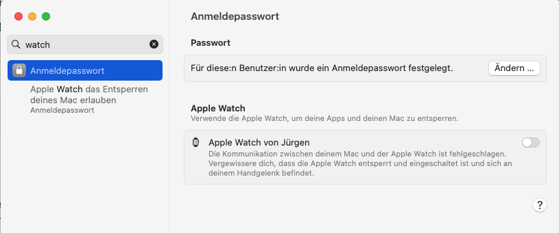 Entsperren von iMac mini M1 mit Aapple Watch SE nach Update watchOS 10 nicht mehr möglich
