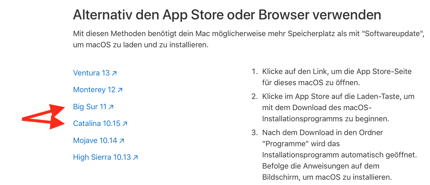 aus dem du Catalina/Big Sur laden und installieren kannst.