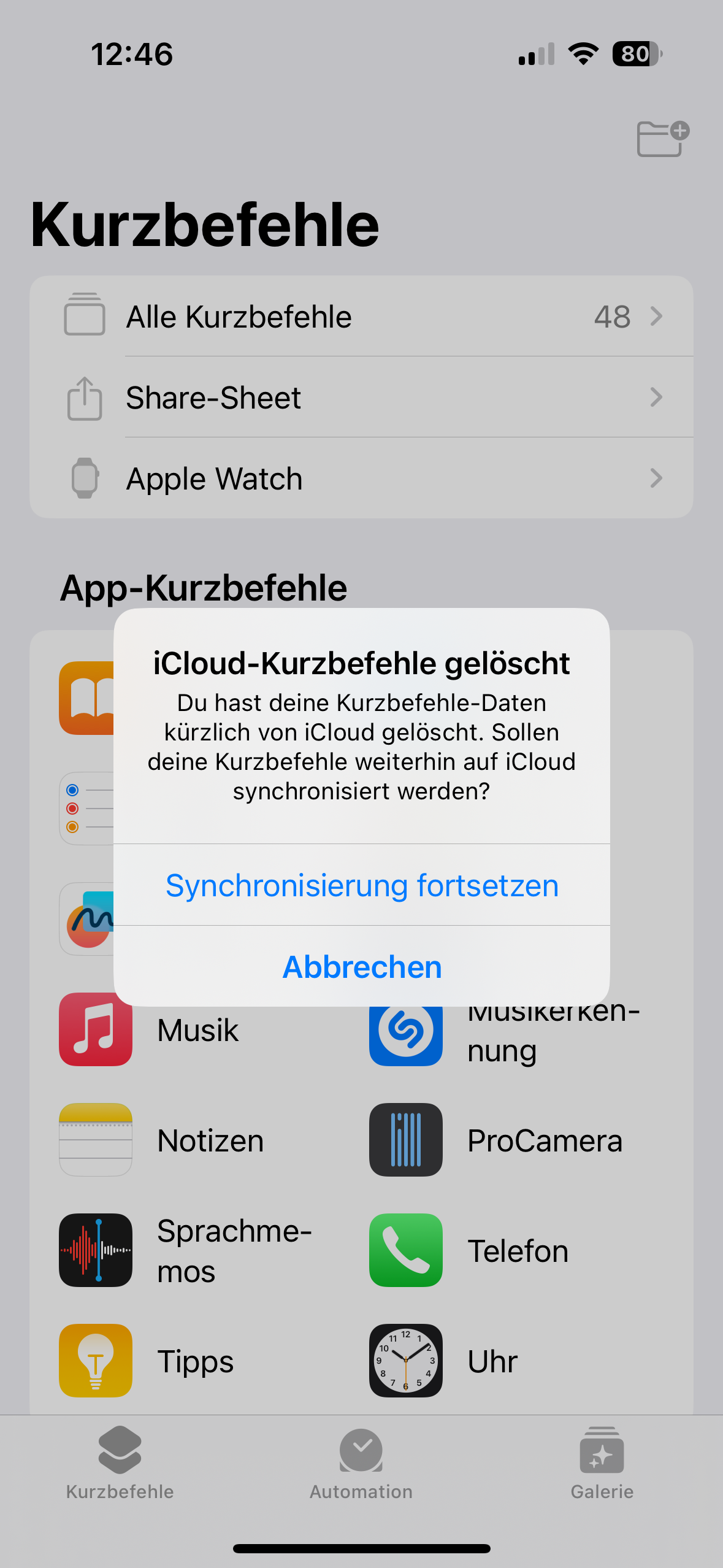 Kurzbefehle Daten wurden von iCloud gelöscht