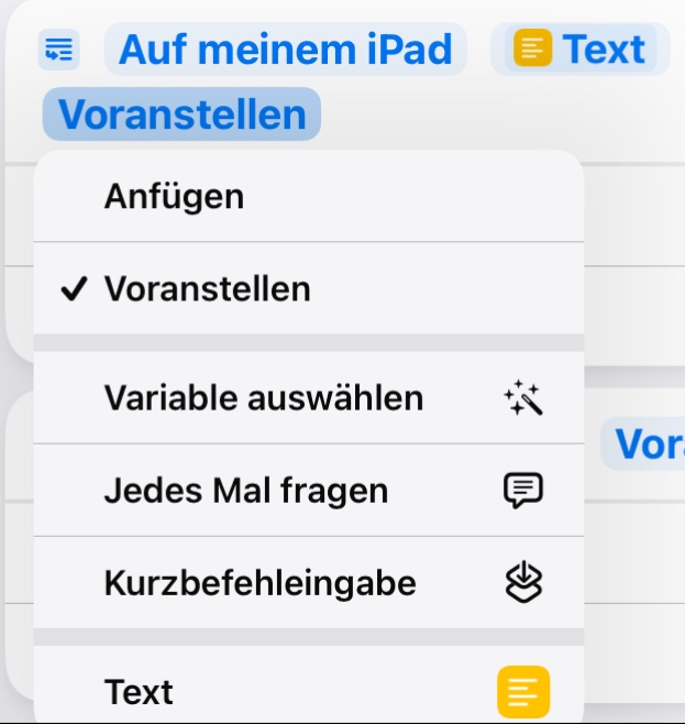 wer hat ab v17.0 auch das Problem mit dem Voranstellen von Text mittels Kurzbefehl-Aktion?