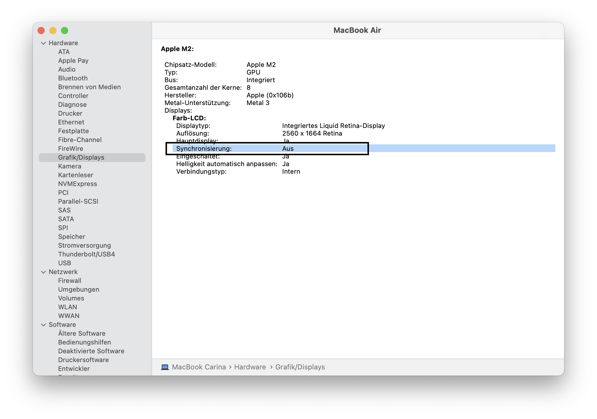 Bildschirmsynchronisierung des MacBooks Air M2 kann nicht aktiviert werden