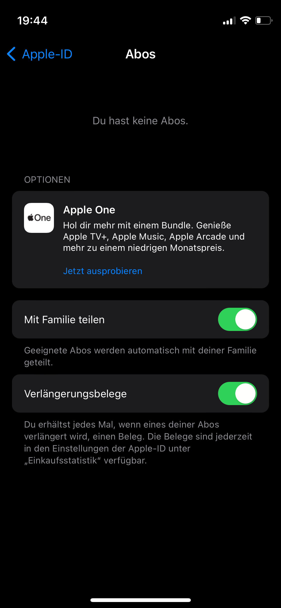 Nachdem ich die Apple-ID gewechselt habe, die alte aus der Familie entfernt wurde und die neue heute hinzugefügt wurde, funktioniert Apple Music auf dem neuen Gerät nicht mehr. Der Organisator teilt die Abonnements schon und sie haben auf meiner alten Apple-ID schon funktioniert. Die Abonnements werden unter Familienfreigabe—geteilte Abonnements schon angezeigt aber unter Apple-ID—Abonnements nicht. Neustart wurde schon probiert. Den Speicherplatz kann ich schon benutzen, nachdem ich gesucht habe, wo ich ihn aktivieren kann drauf geklickt— iCloud Speicher verwenden)