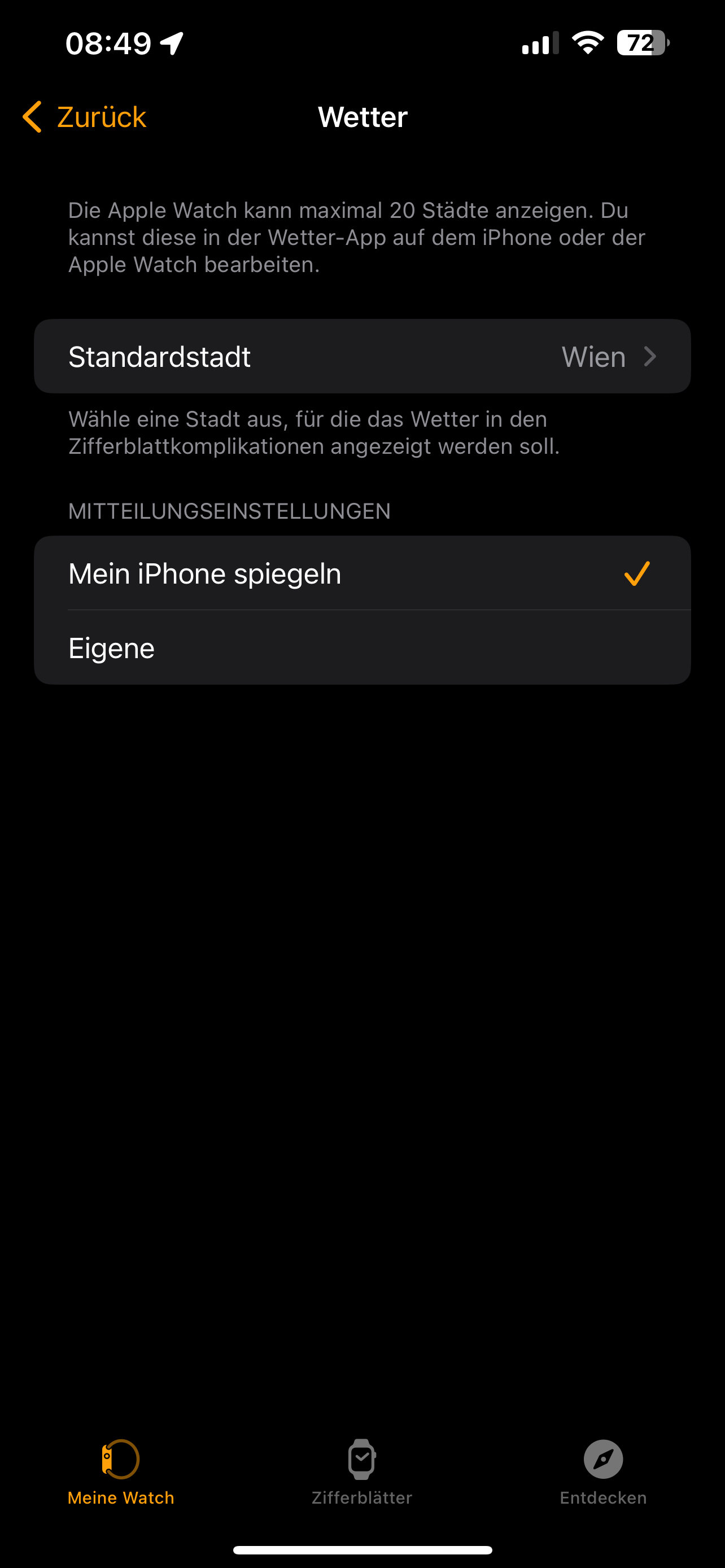 Dort laden die Wetter-Komplikationen keine Daten sondern zeigen nur zwei Striche. Wenn ich drauf klicke, geht die Wetter-App auf und zeigt meinen Standort und alle Daten 🤷‍♂️