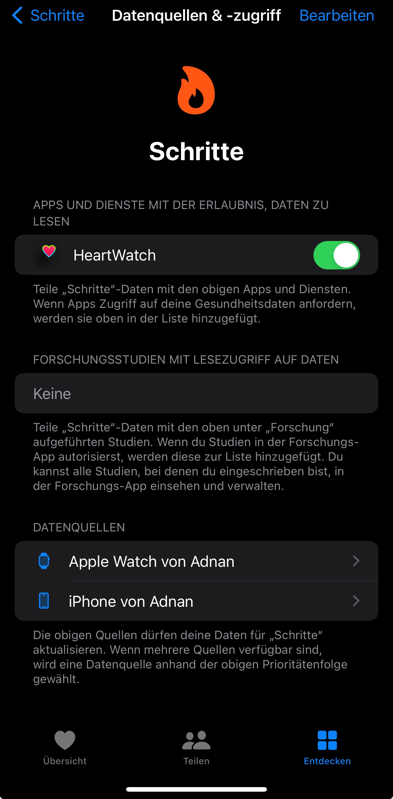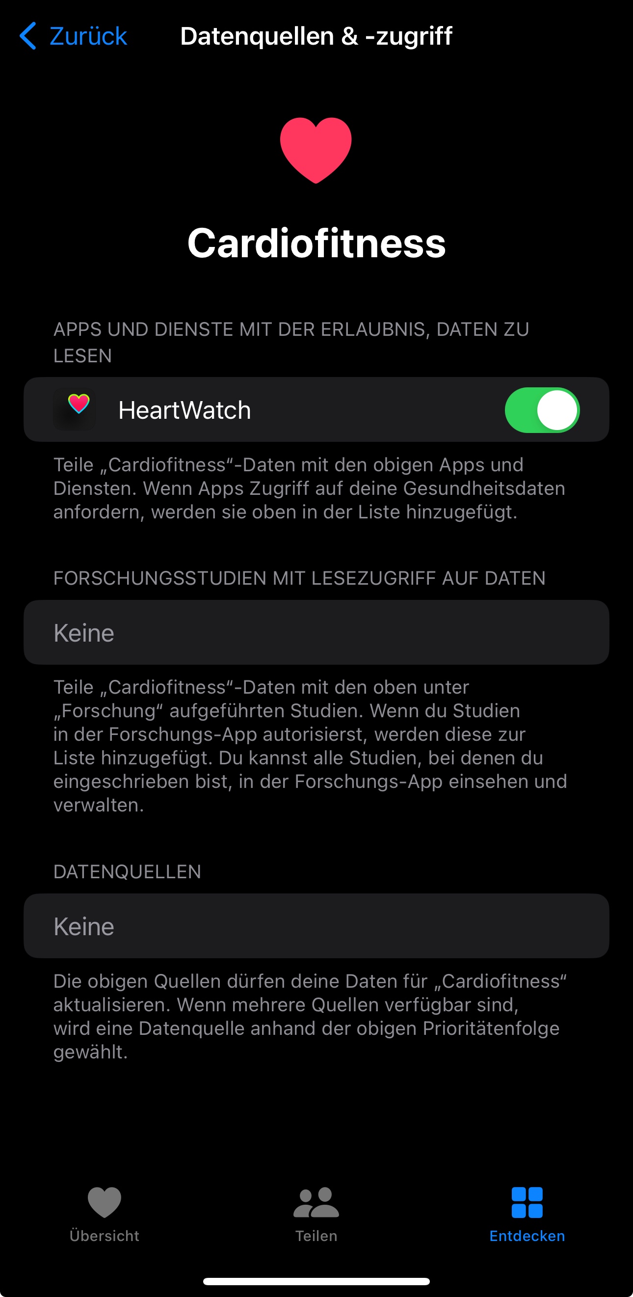 jedoch habe ich festgestellt das in der Health App Cardiofitness und Cardioerholung nicht angezeigt wird.