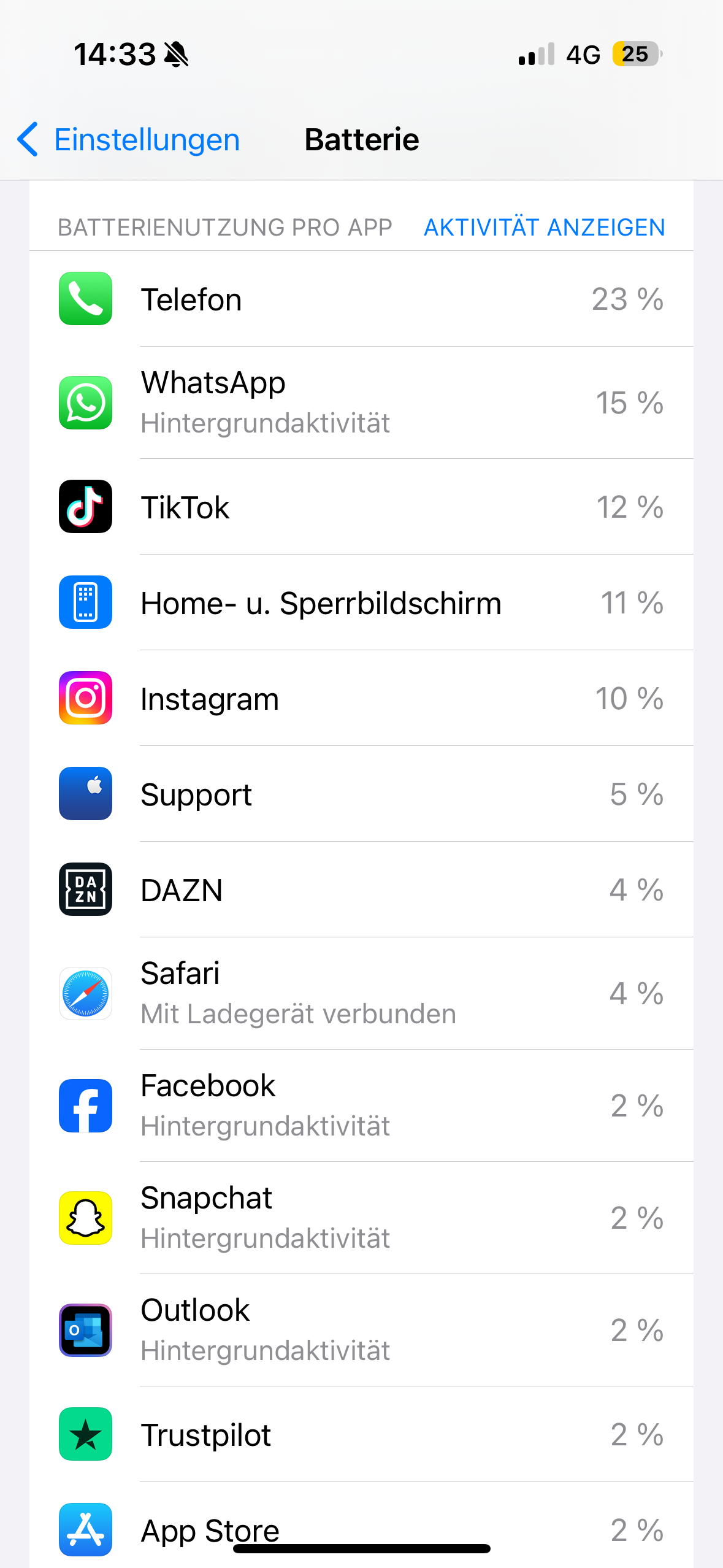 Ich habe bereits sämtliche Sachen (erzwungener Neustart, Hintergrundaktualisierung ausschalten,…) probiert, sogar das iPhone komplett zurückgesetzt und mit Backup neu installiert.