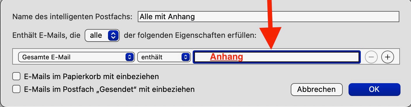 Mail Ansicht "Alle" = nur Mails mit Anhängen anzeigen
