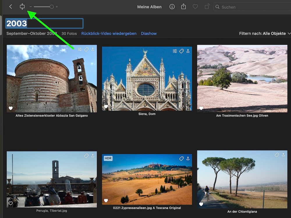 ich suche nach einer Möglichkeit, bei der Fotos-App auf meinem MacBookPro die Rückblicke als Listenansicht anzuzeigen, alternativ wäre auch eine Ansicht wie bei den Rückblickfavoriten hilfreich für eine schnelle Übersicht.