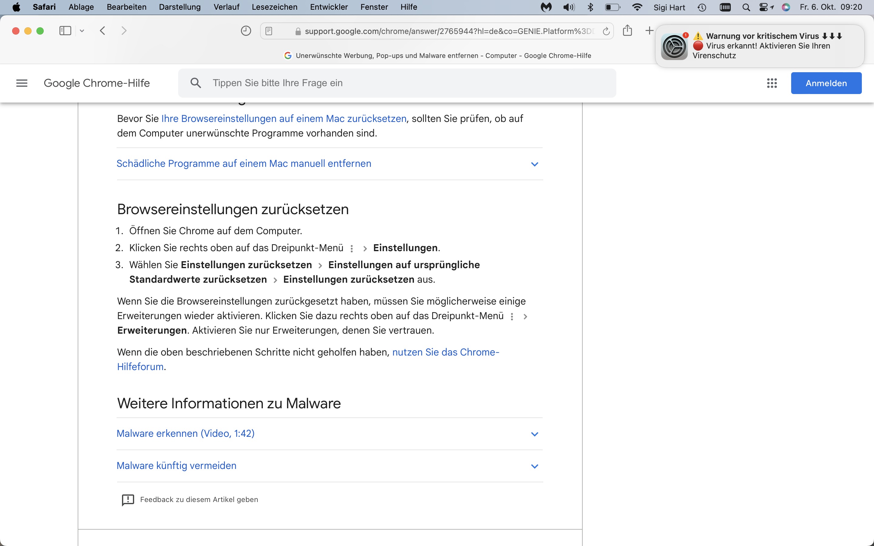 Mac zeigt Pop-Ups an